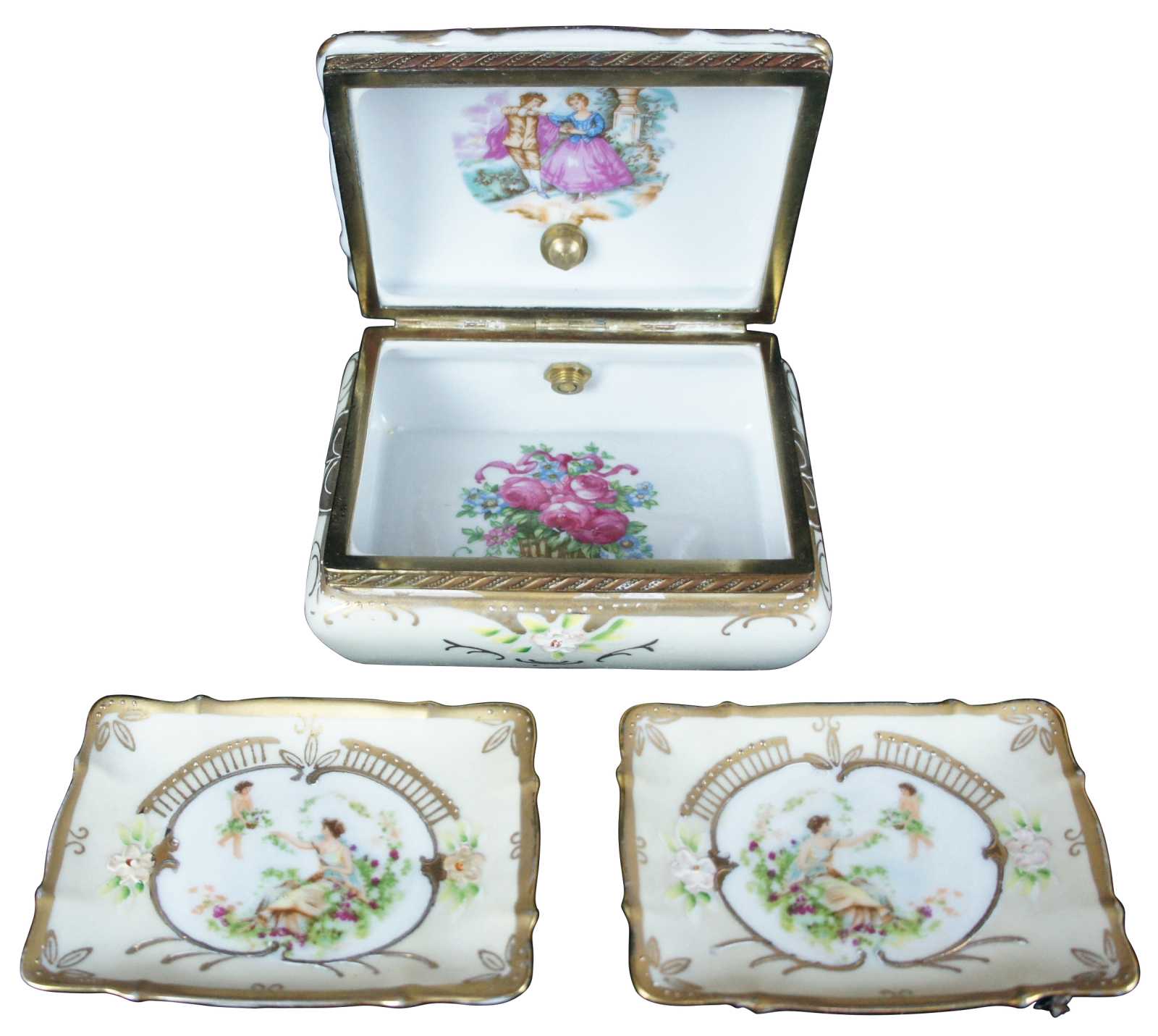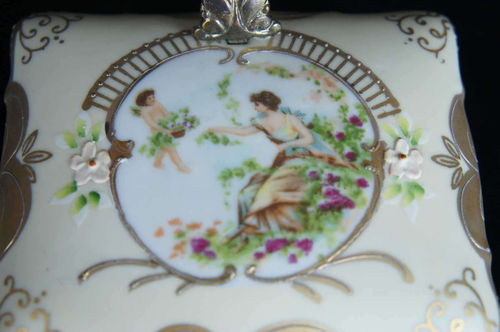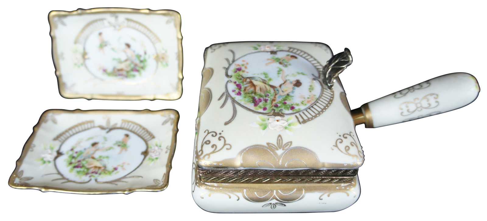 Vintage Ardalt Lenwile Japan porcelain silent butler crumb catcher and ashtrays featuring hand painted figures, floral and cherub design. 6802
