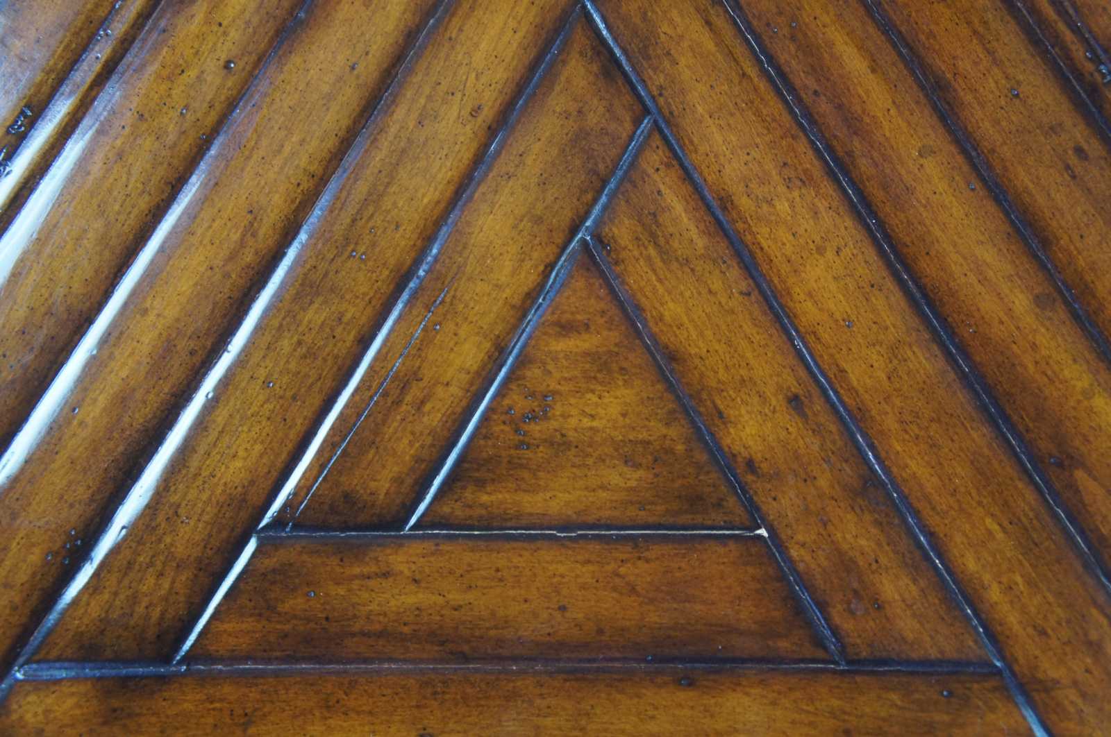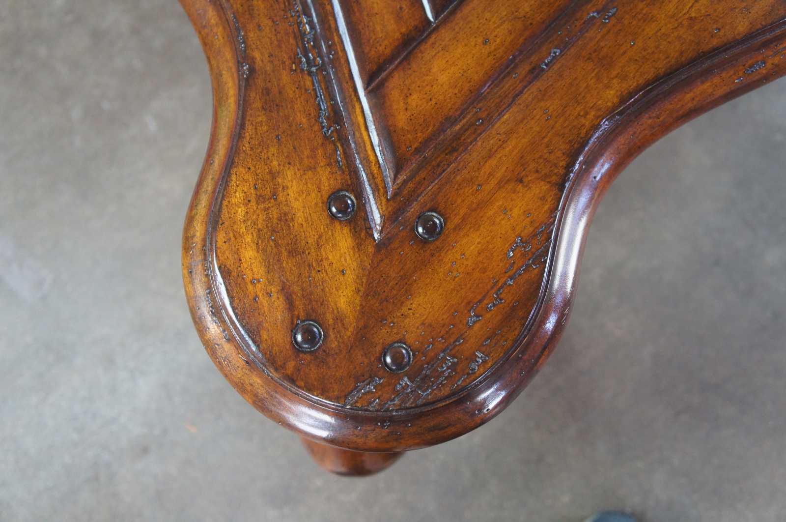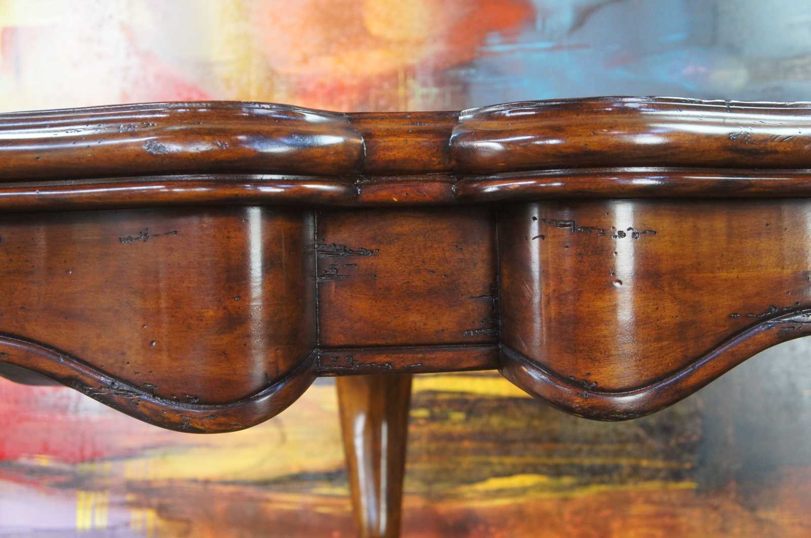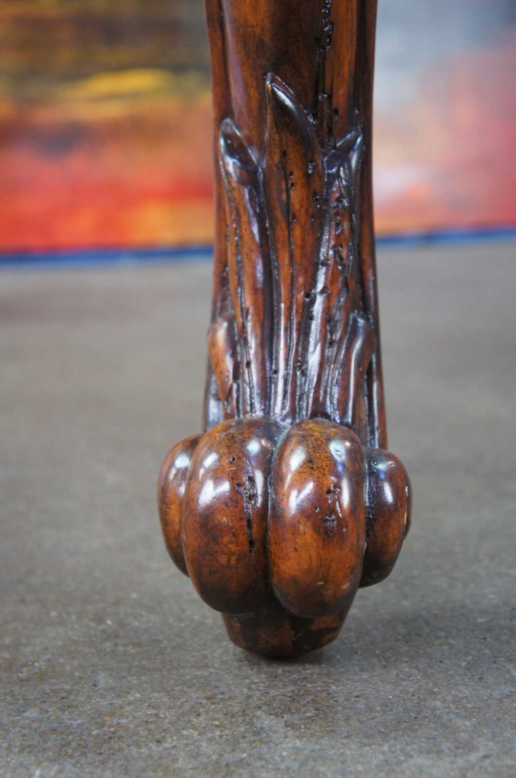 Vintage Marge Carson Liore Triangular center table. Made of mahogany featuring a sculpted triangle form with serpentine apron, cabriole legs and acanthus scrolled feet.