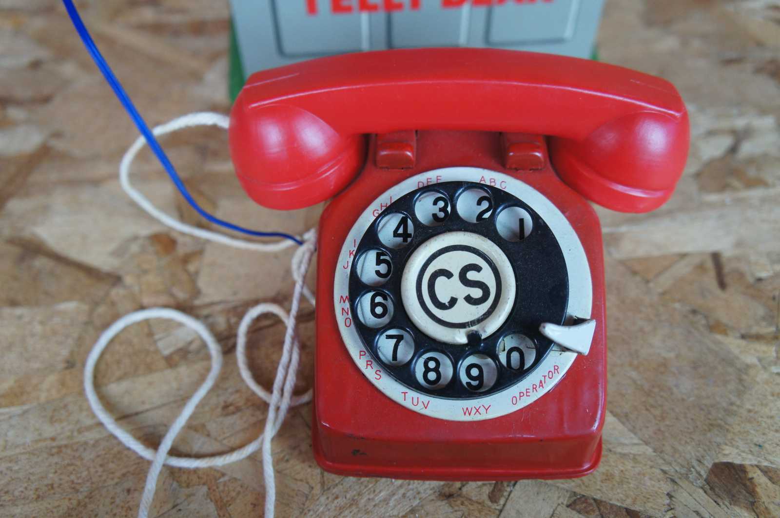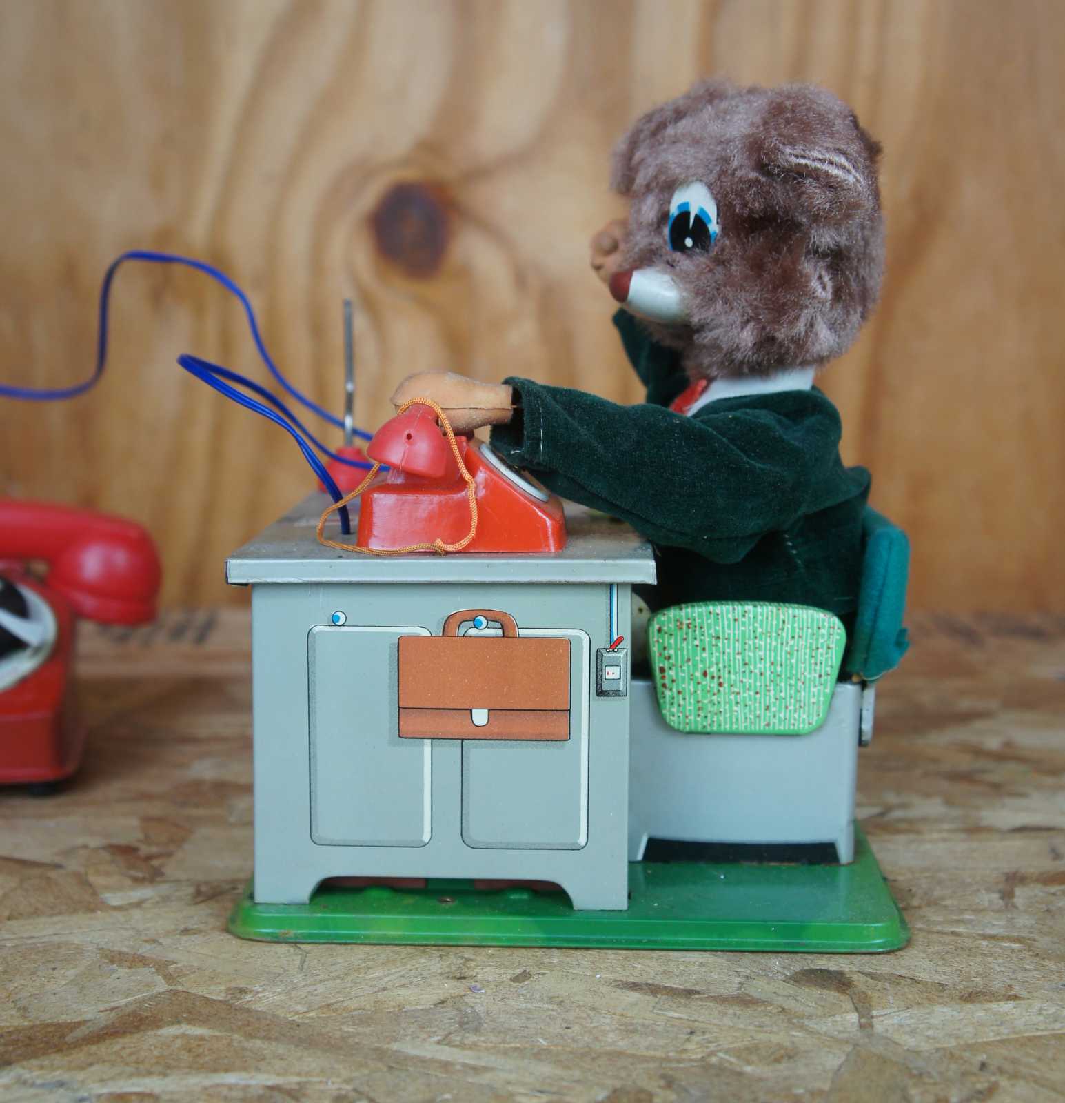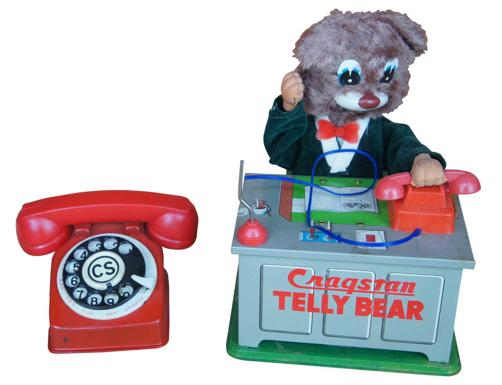 1950 mid century Telly Bear battery operated animated toy telephone by Cragstan Japan.