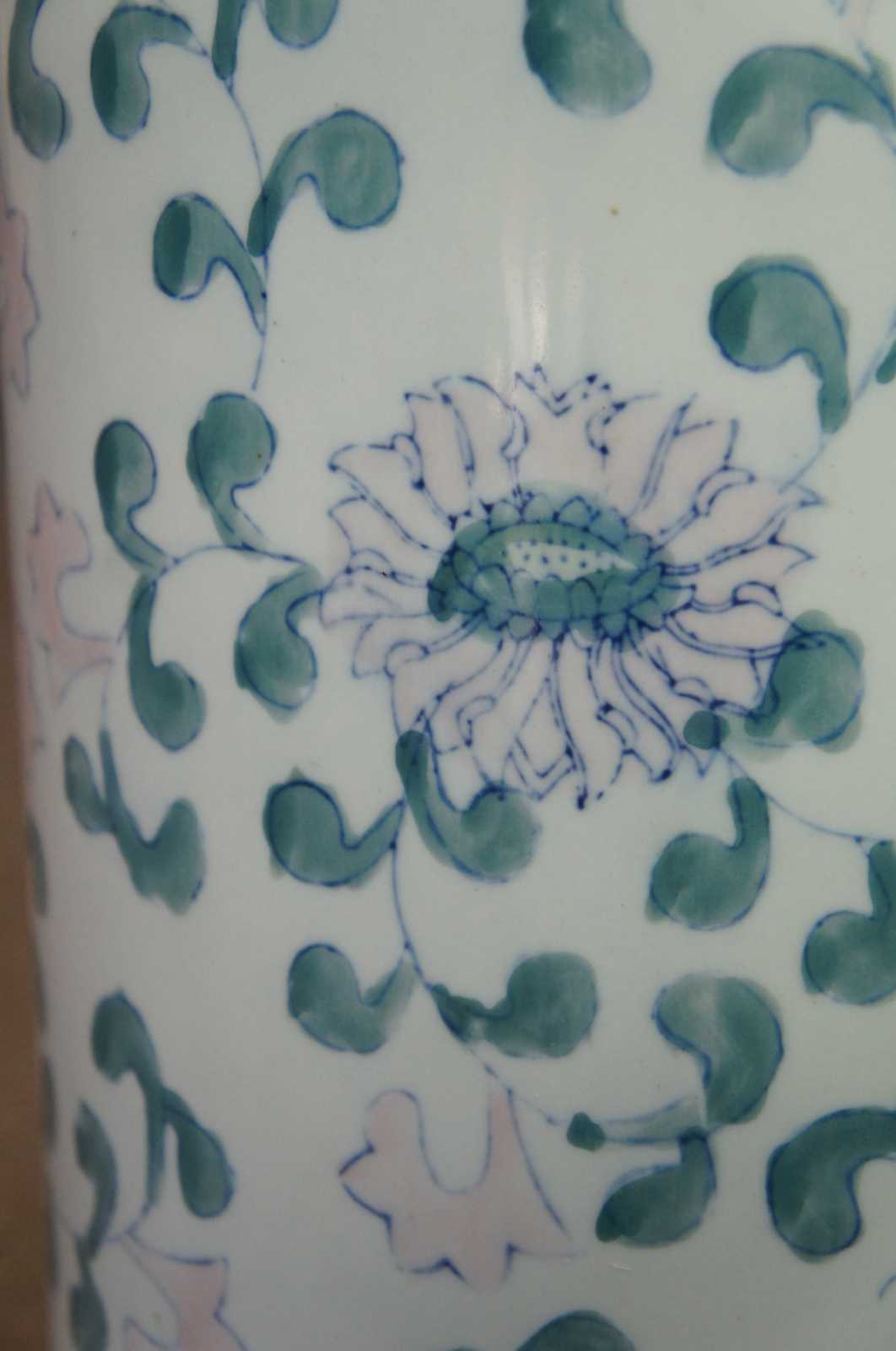 Antique Chinese Famille Verte Porcelain Floral Umbrella Holder Cane Stand 18"