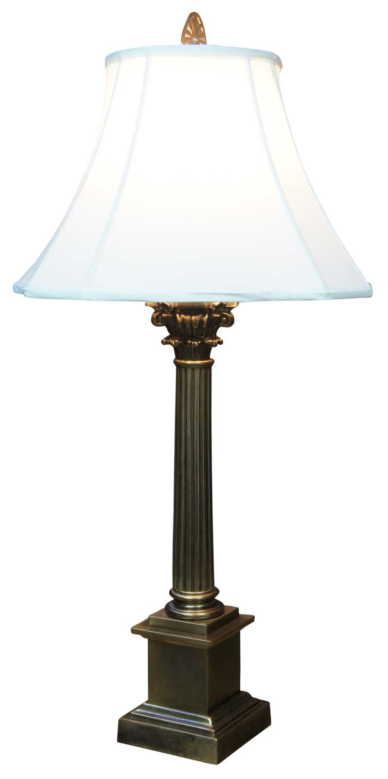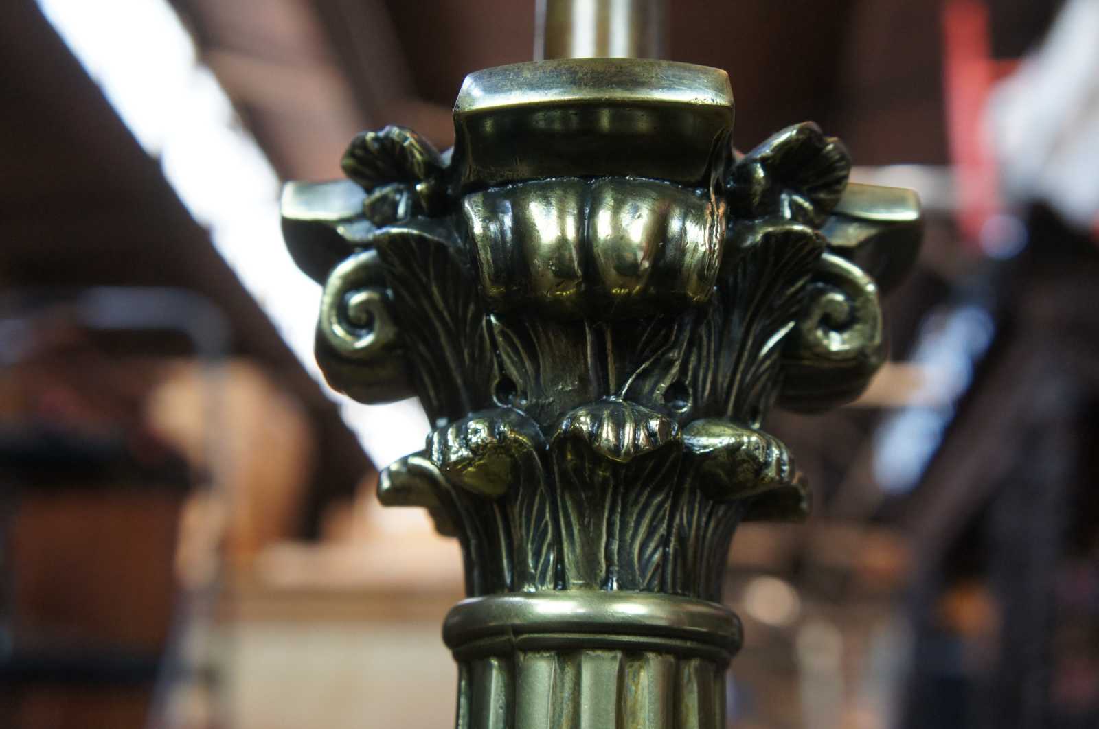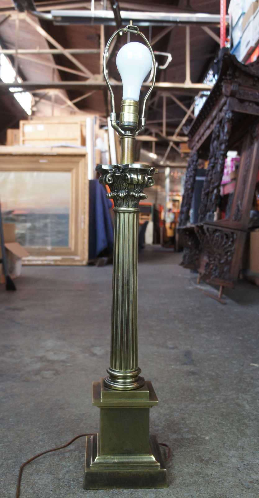 Vintage Frederick Cooper Chicago Lamp. Made of brass featuring Grecian styling with square base and corinthian column candlestick form.