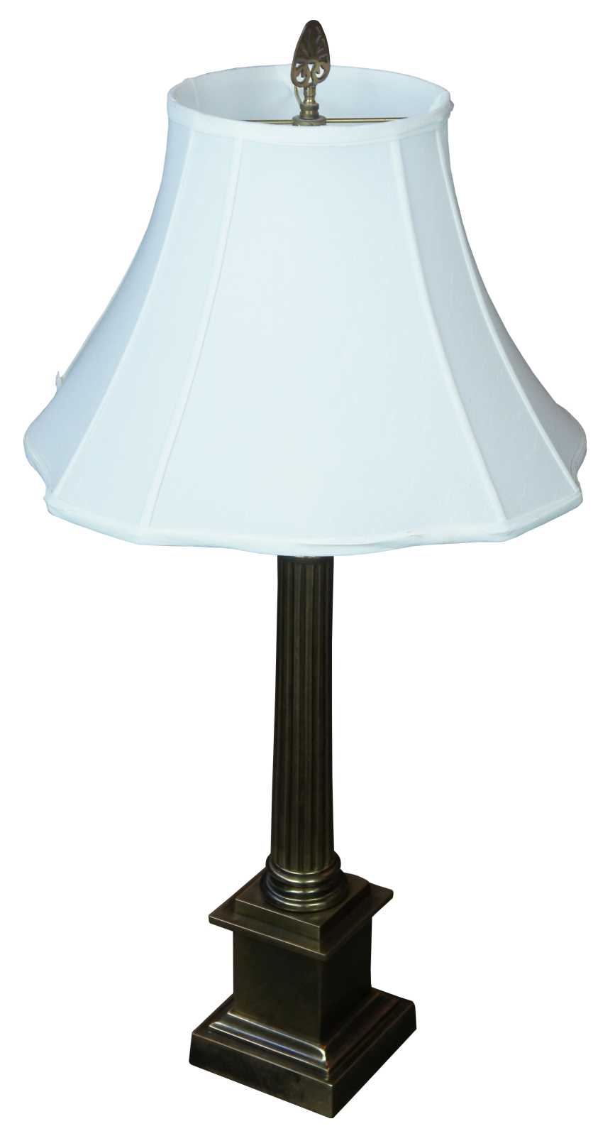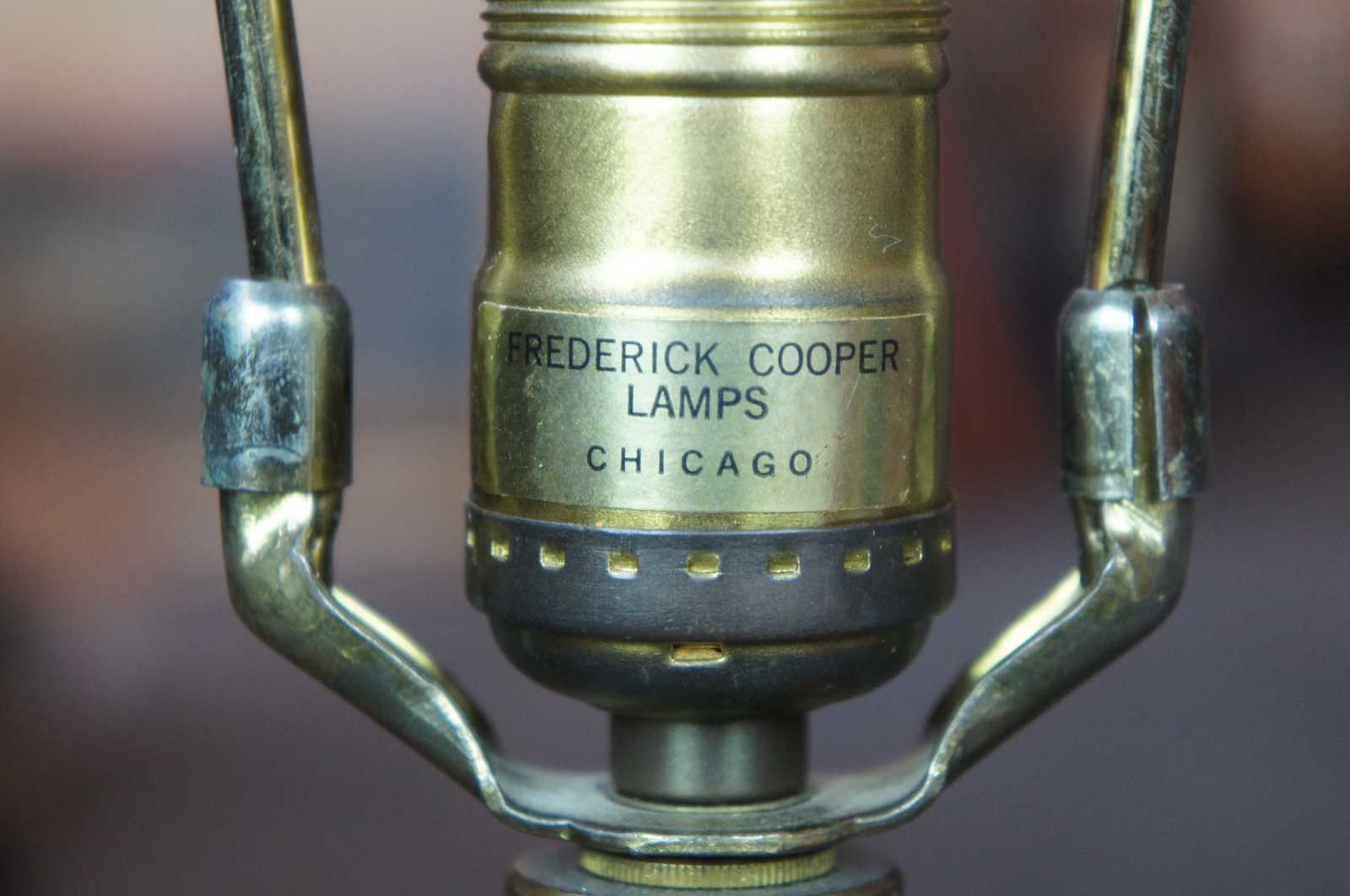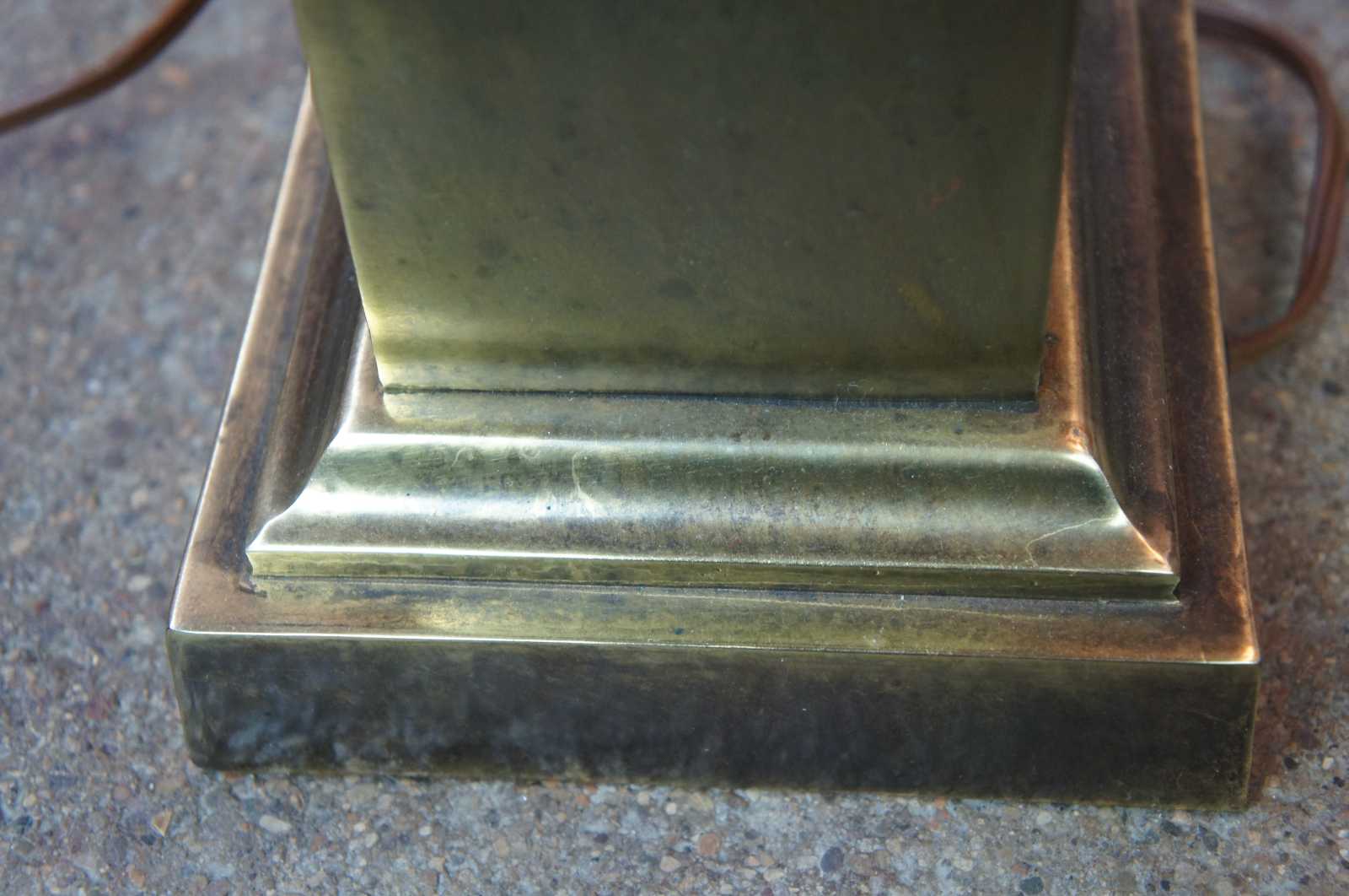 Vintage Frederick Cooper Chicago Lamp. Made of brass featuring Grecian styling with square base and corinthian column candlestick form.