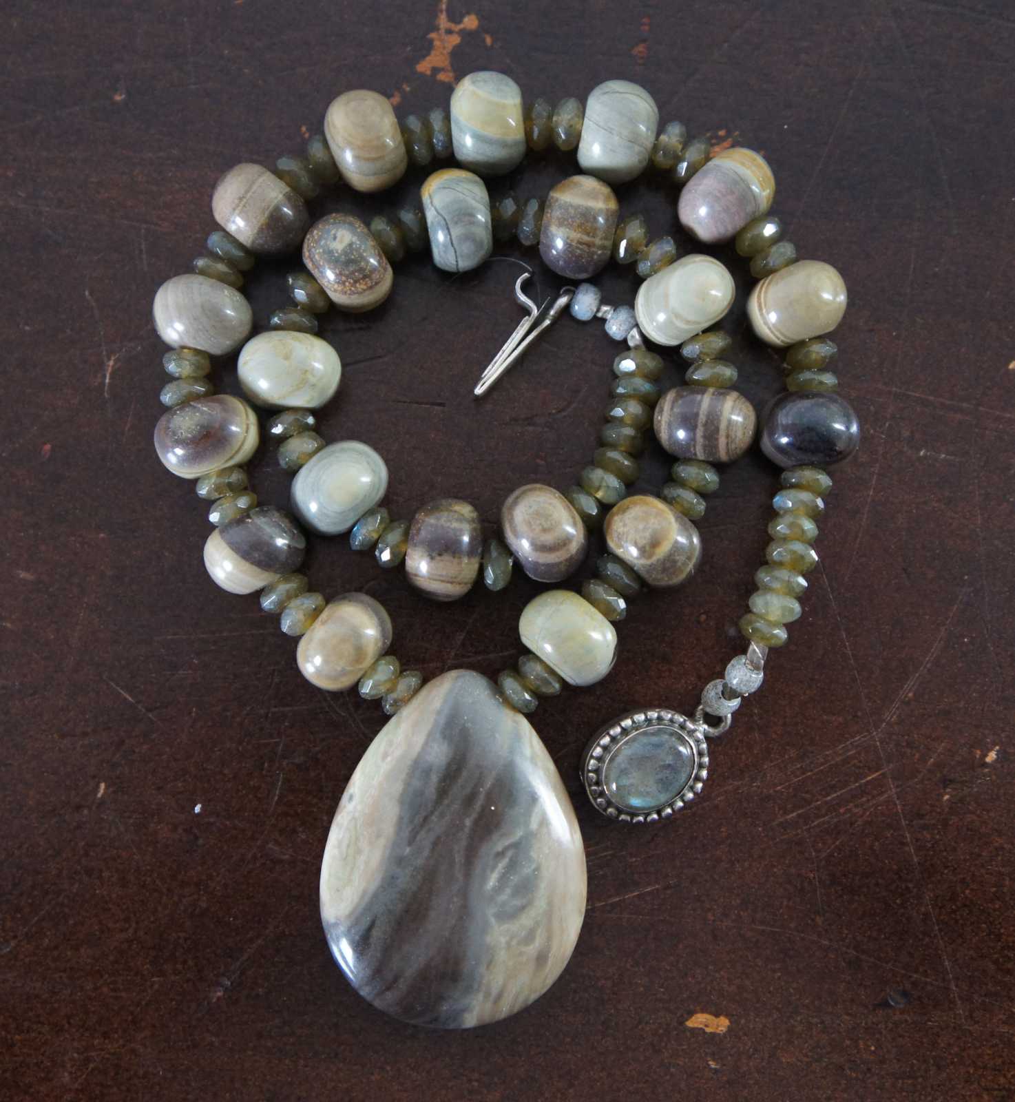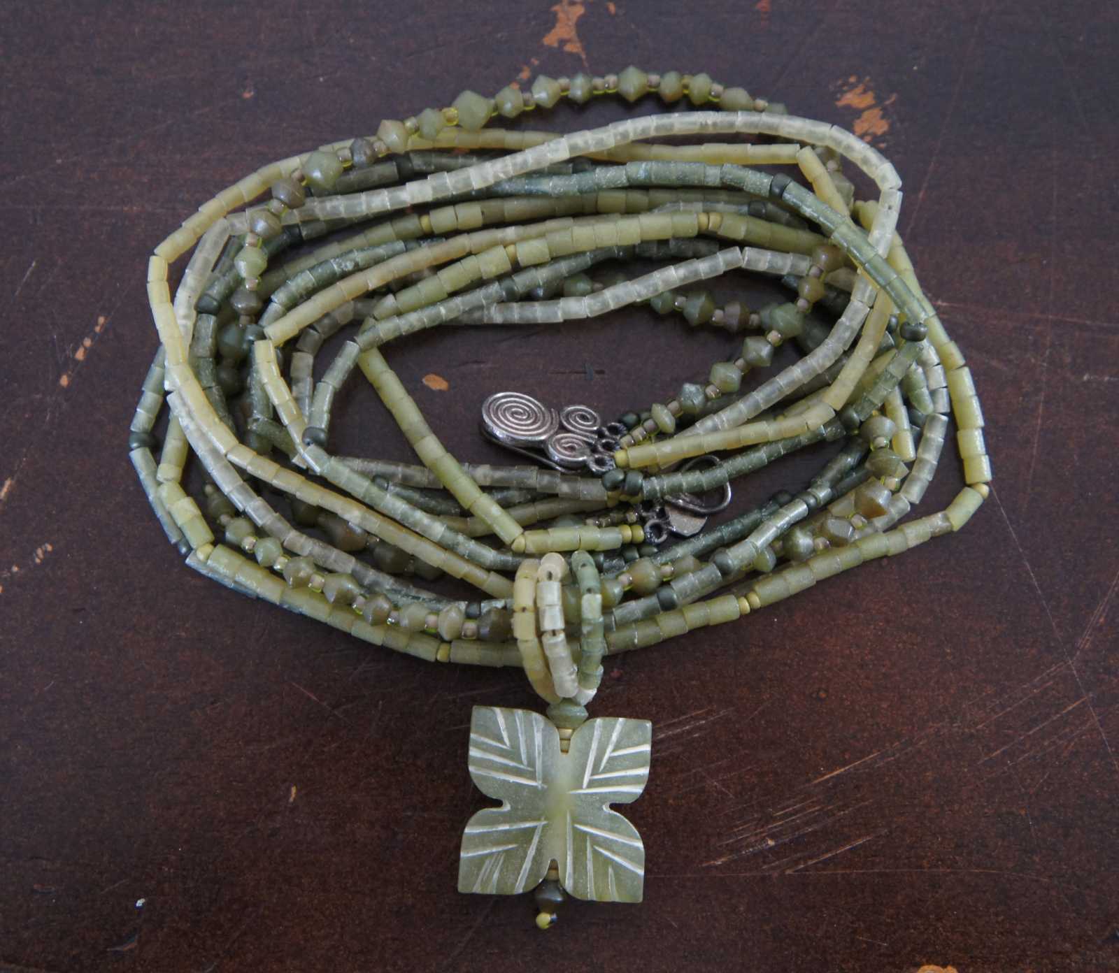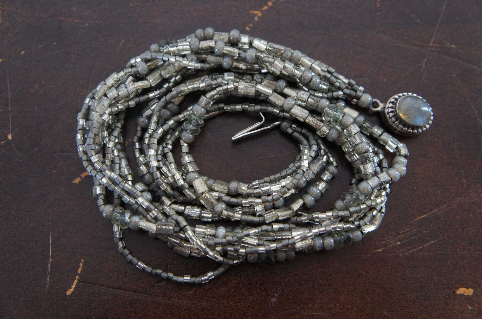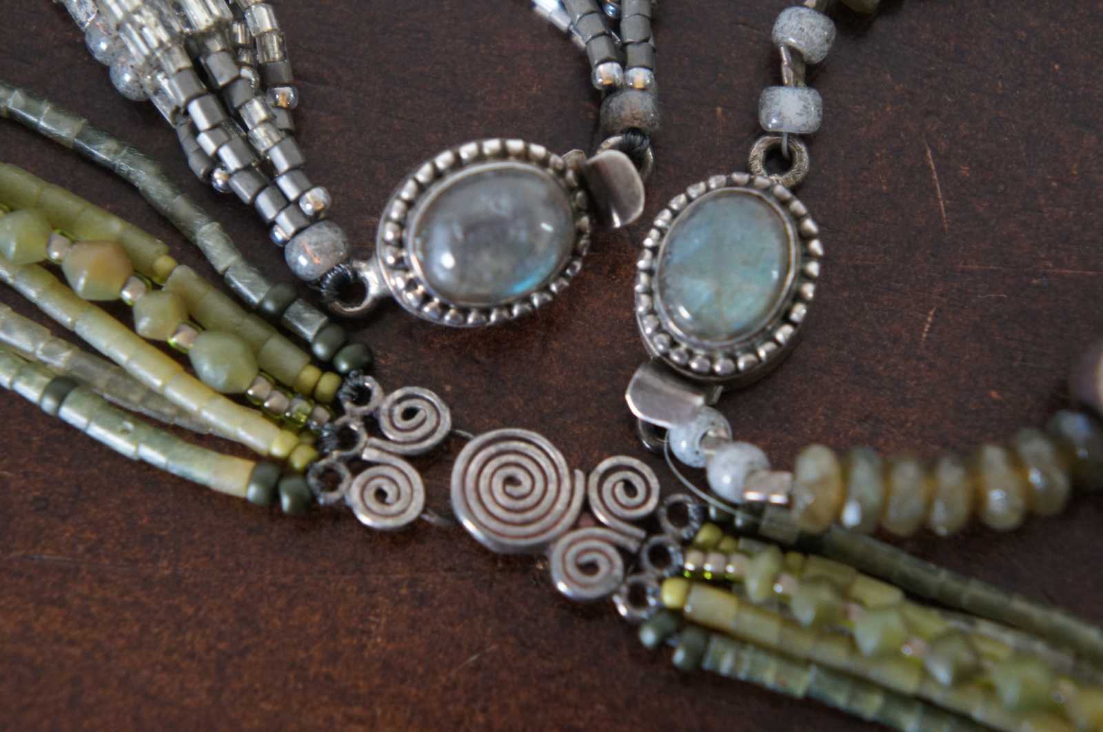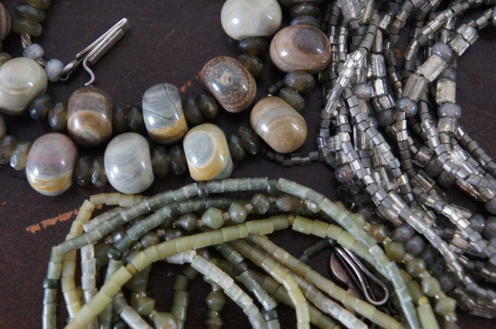 Lot of three vintage multi and single strand natural stone necklaces featuring faceted gemstones and beads with unique clasps and pendants.