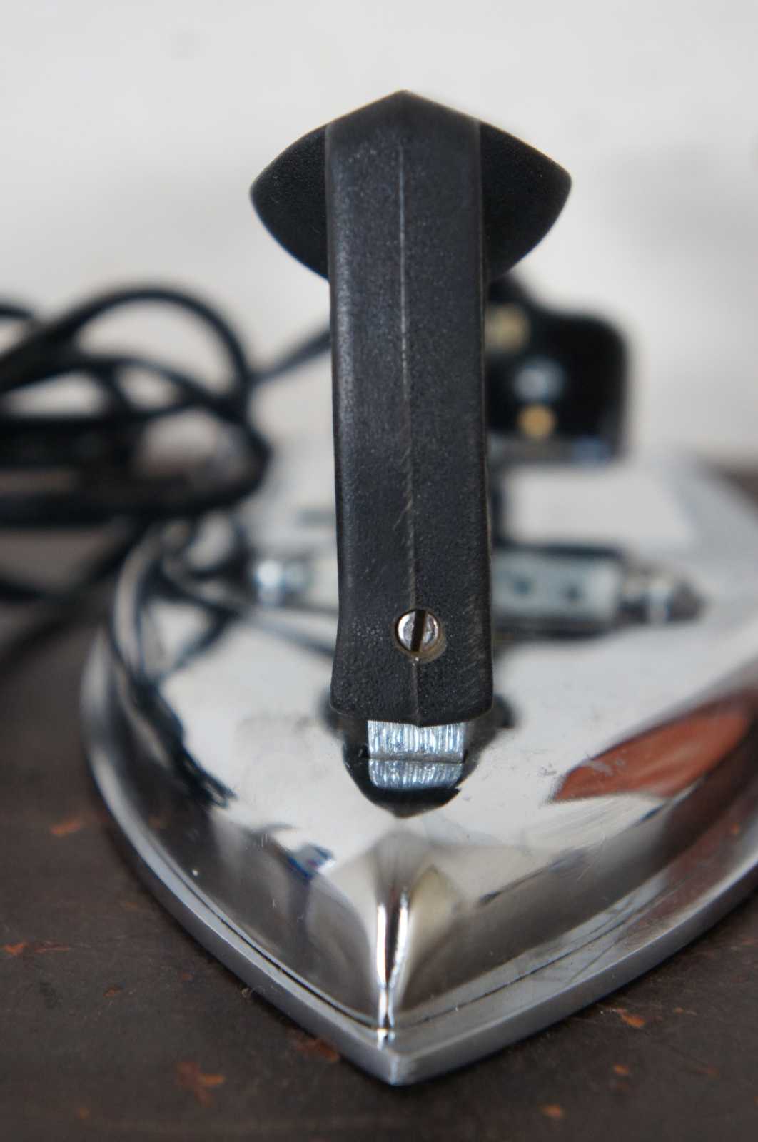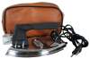 1960s vintage Fuego Mdlo 75 travel iron, made in spain with folding handle, European plug and brown carrying case. Includes European to United States plug converter. Made in Spain.