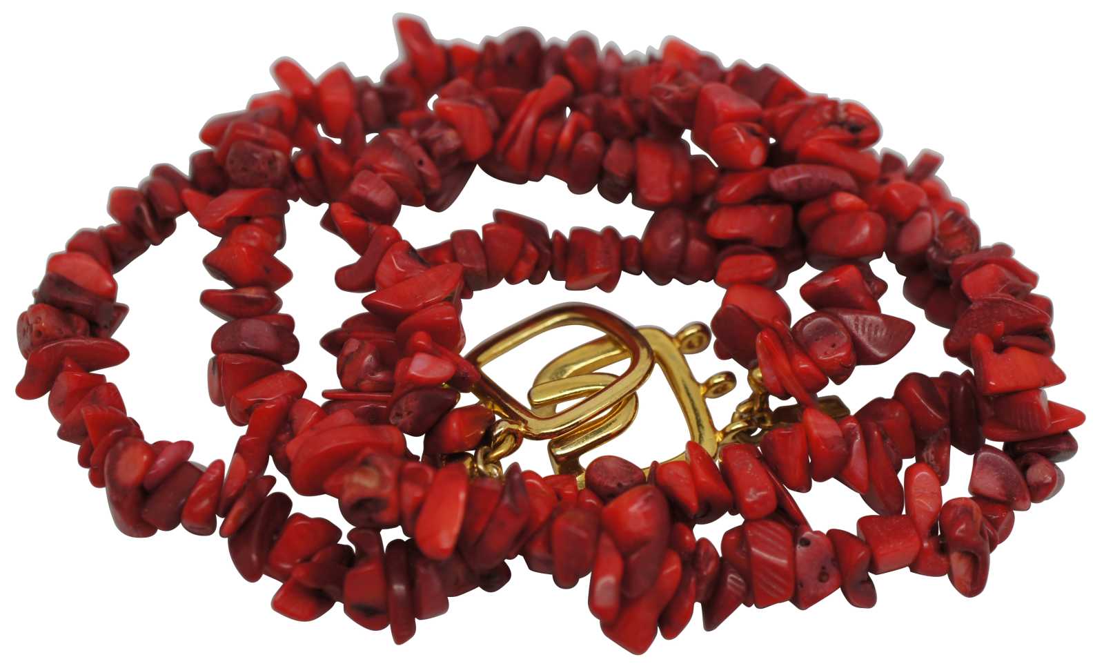 Vintage Kenneth Lane double strand tumbled stone beaded jewelry necklace in red coral.