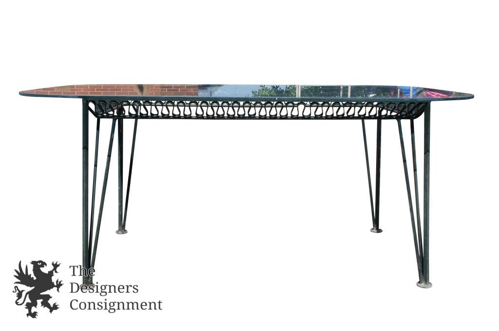 Salterini Mid Century Modern Ribbon Patio Table Porch Dining Glass Top 52
