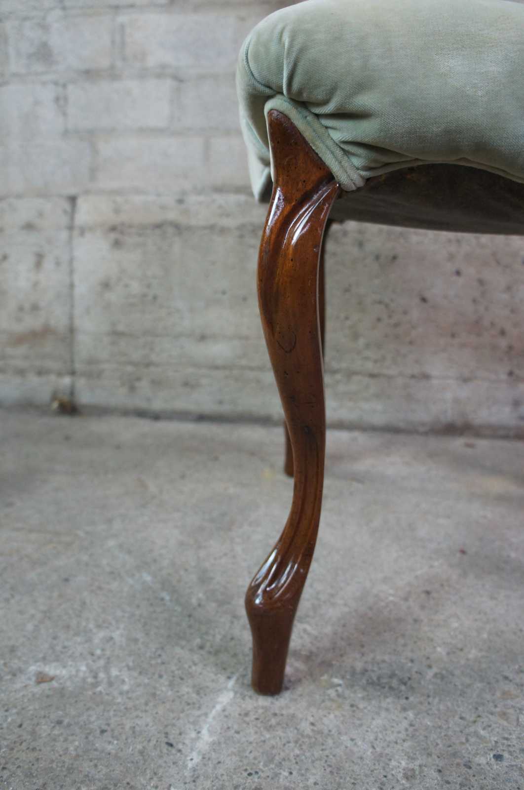 Fair condition, wear and distressing commensurate with age and use, past repair to crown, fading / staining to upholstery.