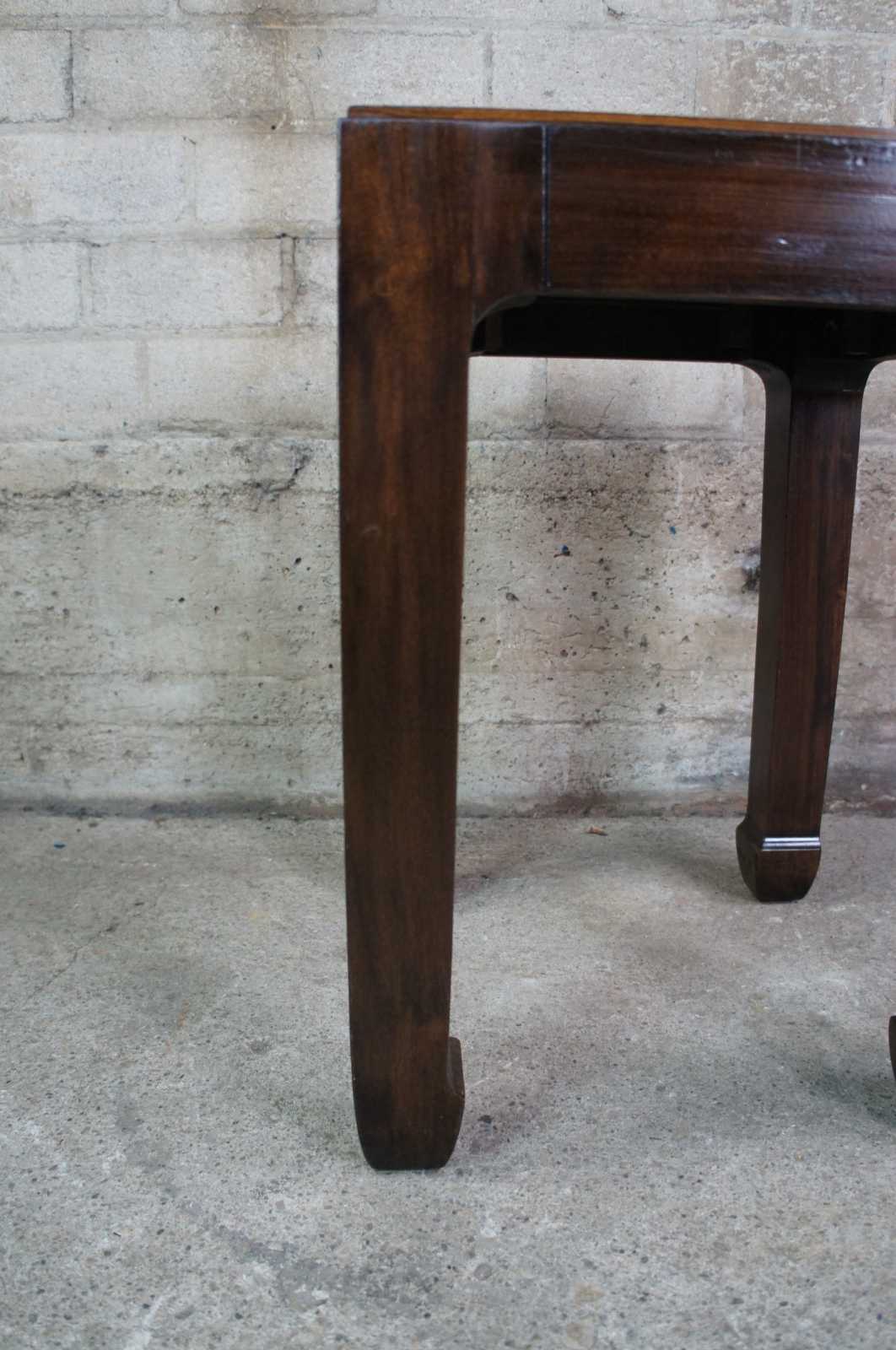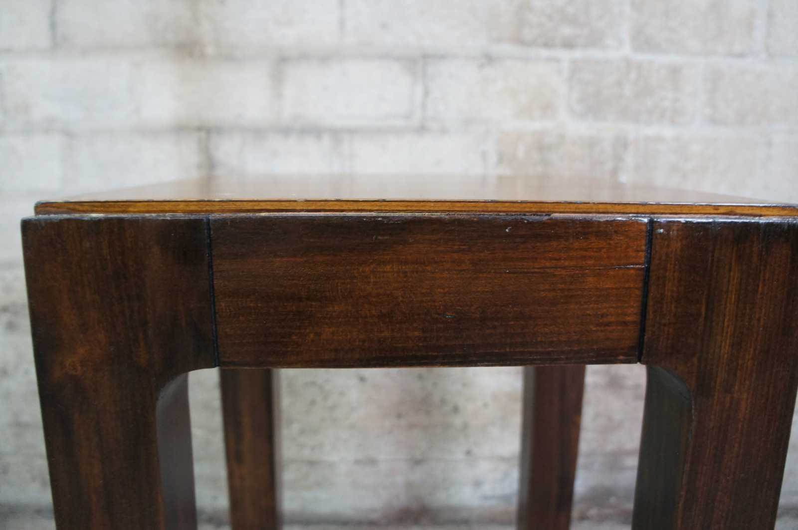 1980s chinoiserie Lane Altavista side table. Made of walnut featuring square form with chinoiserie style legs and glass top. Manufactured on February, 2nd 1980. Style No. 1024 66