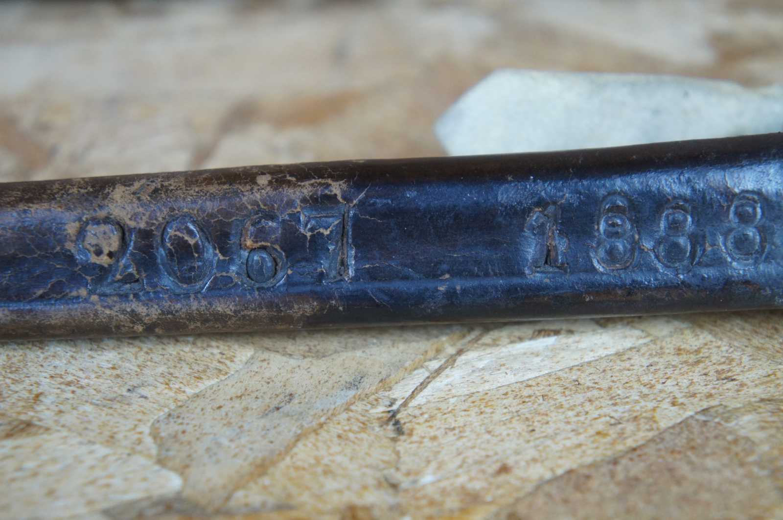 Good antique condition, wear to leather, rust.