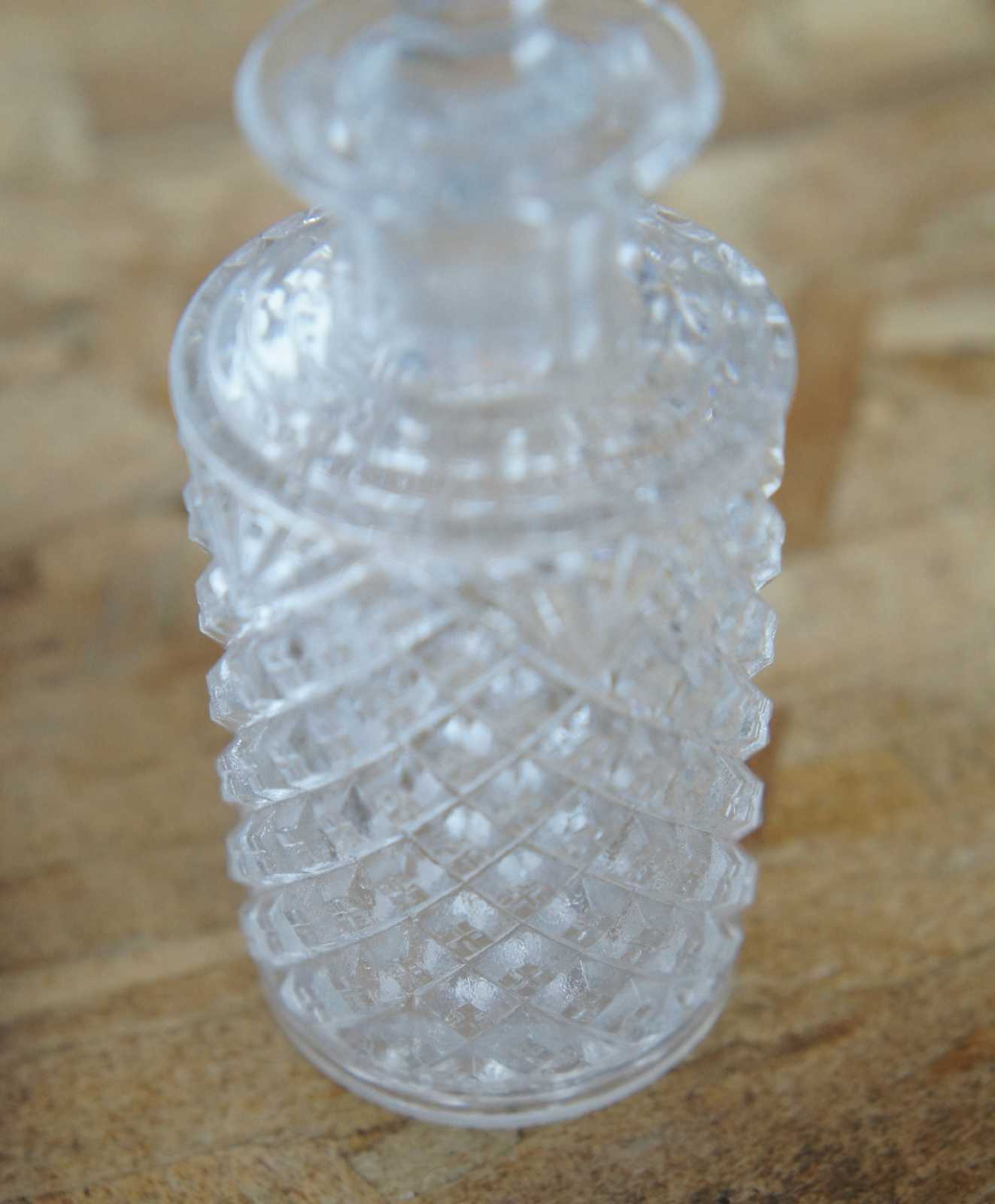 Good overall, wear / marking / scrapes to stopper / neck interchange, chip to large base.