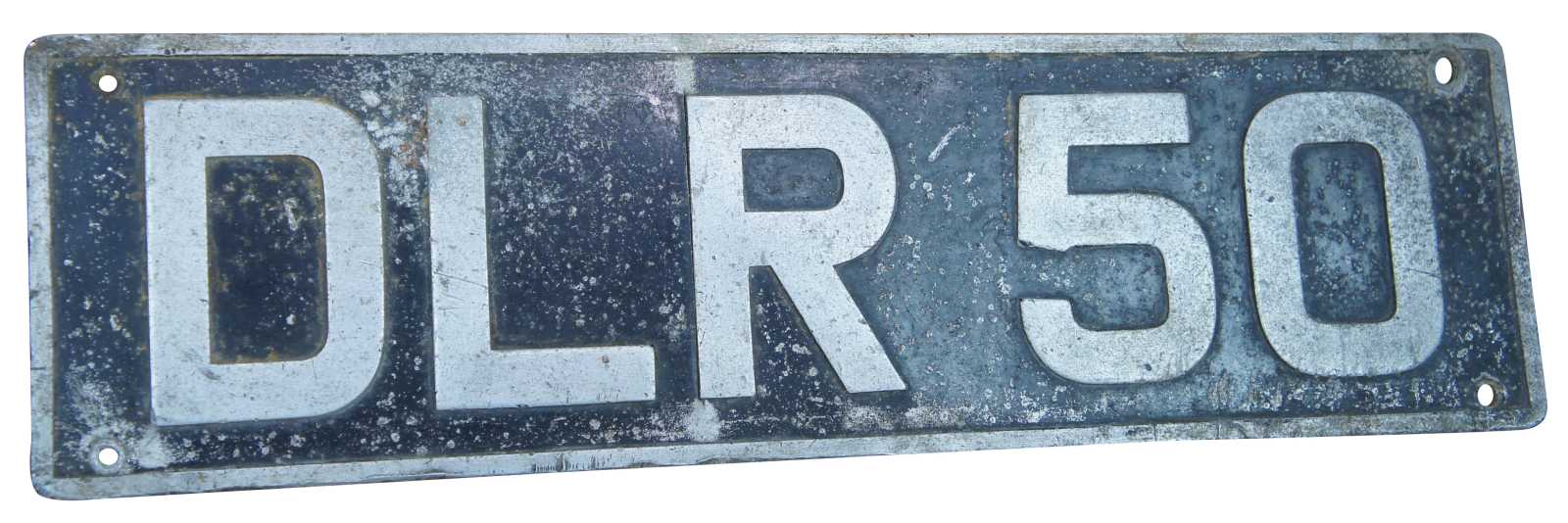 Rare antique European dealer license plate with the initials DLR and number 50.