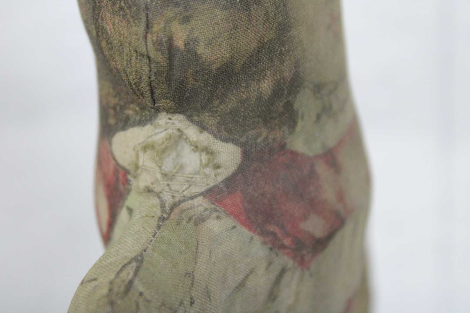 Good Overall - Some fading/discoloration/light stains; hole at neck; some repairs.