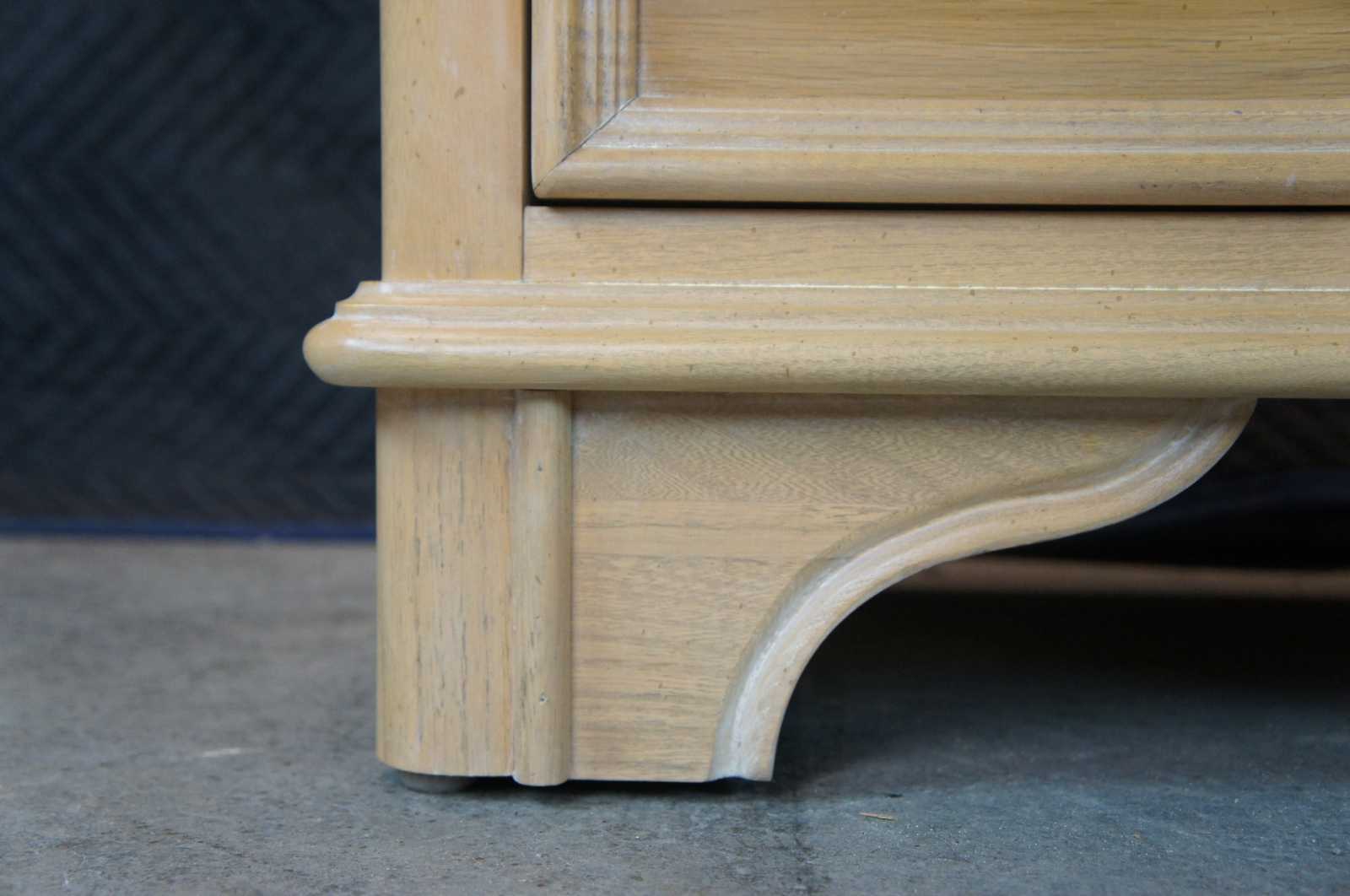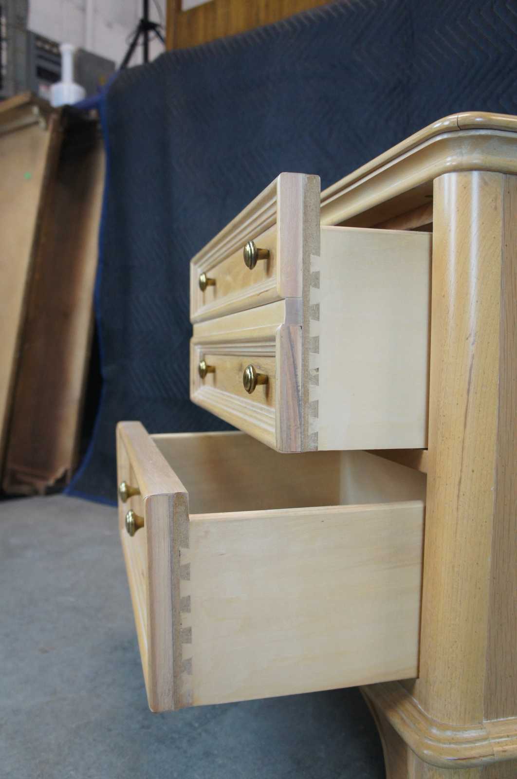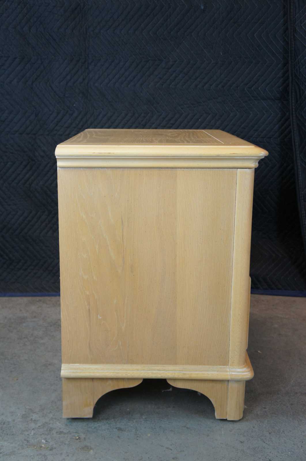 Vintage 1990s Bernhardt chest or nightstand. Made of oak featuring two drawers with brass hardware and bracket feet. 281 - 230.