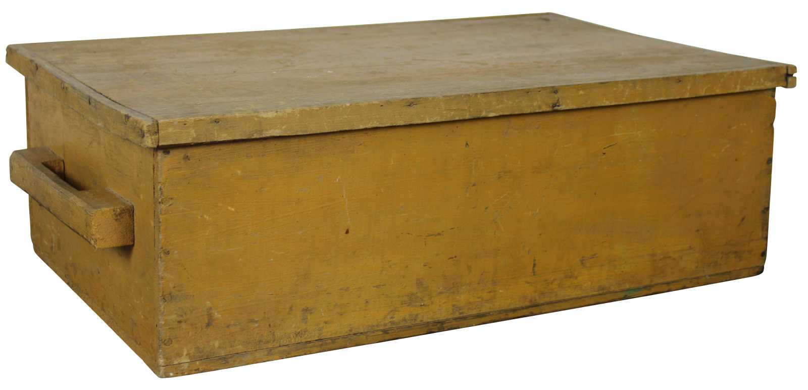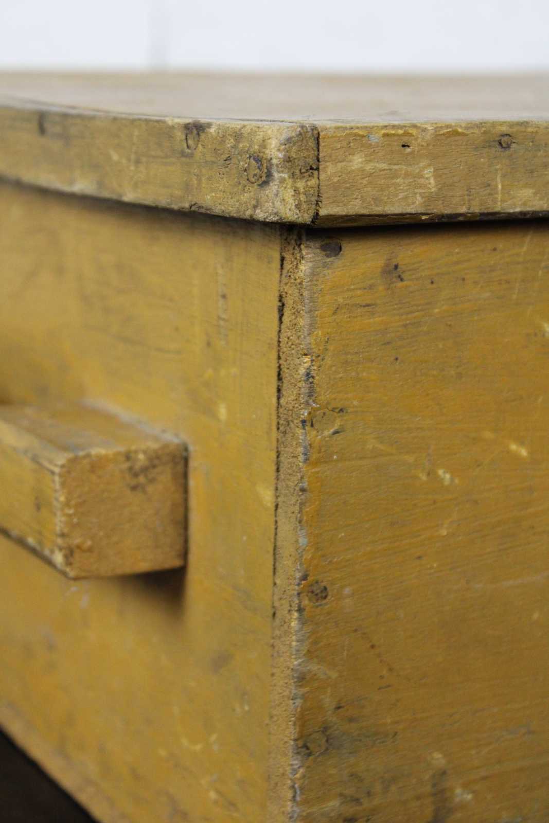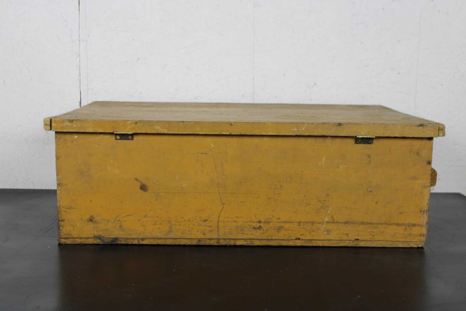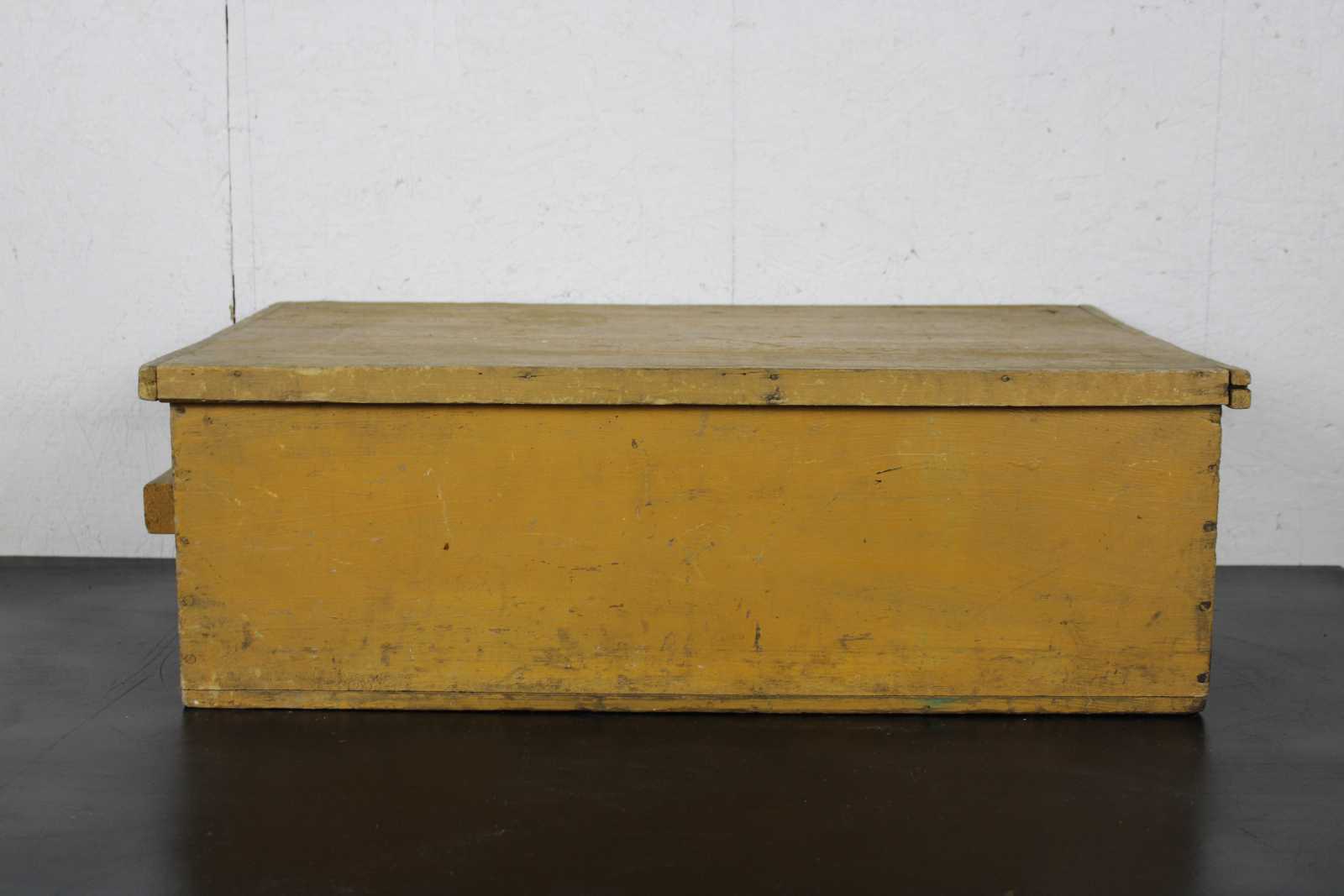 Antique primitive country farmhouse early American folk art style yellow painted pine toy or blanket chest / trunk.