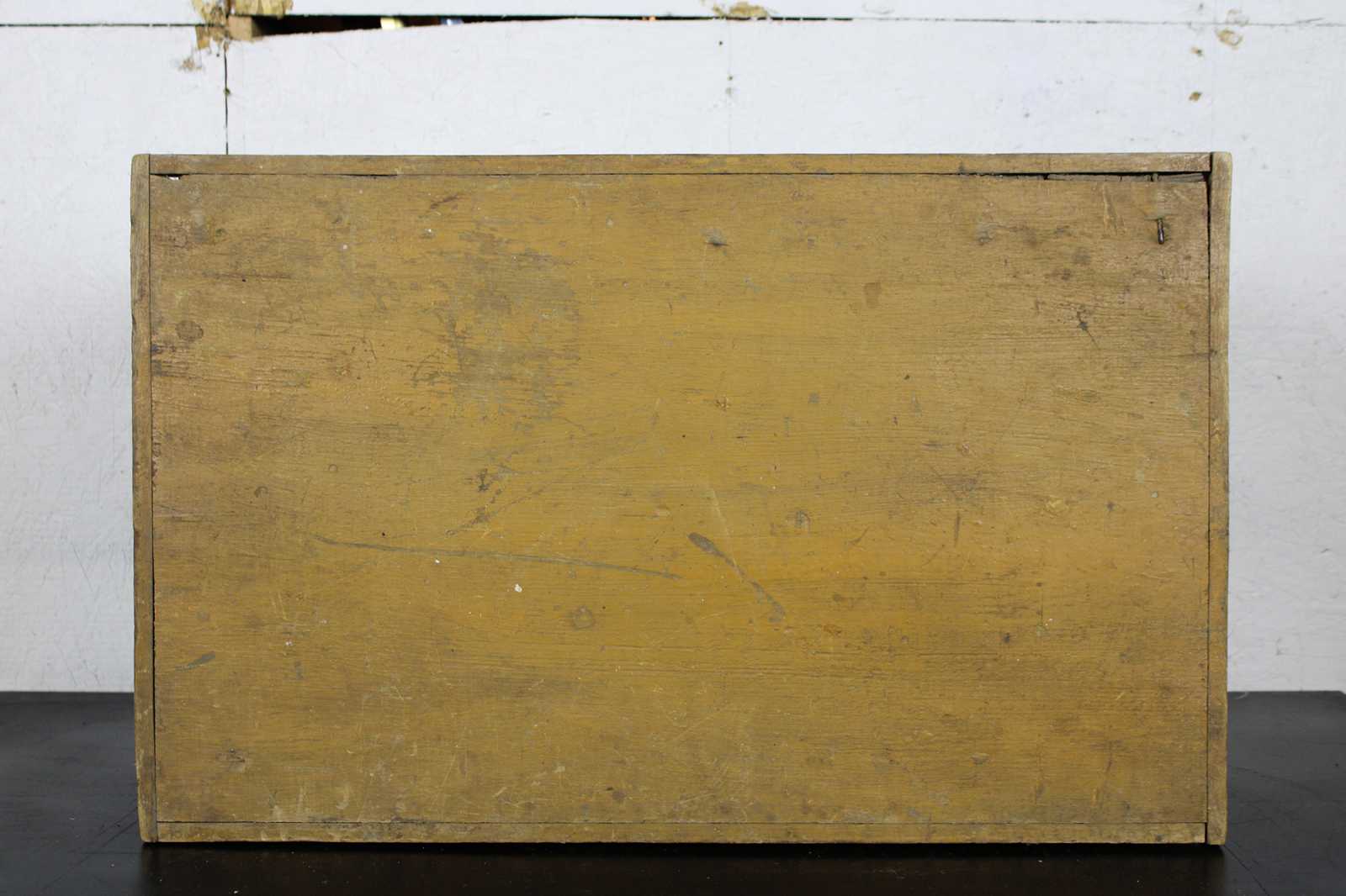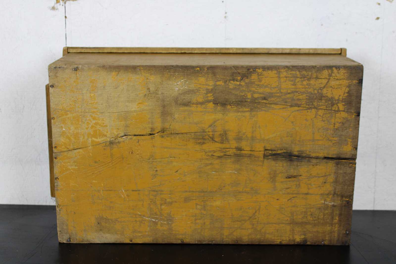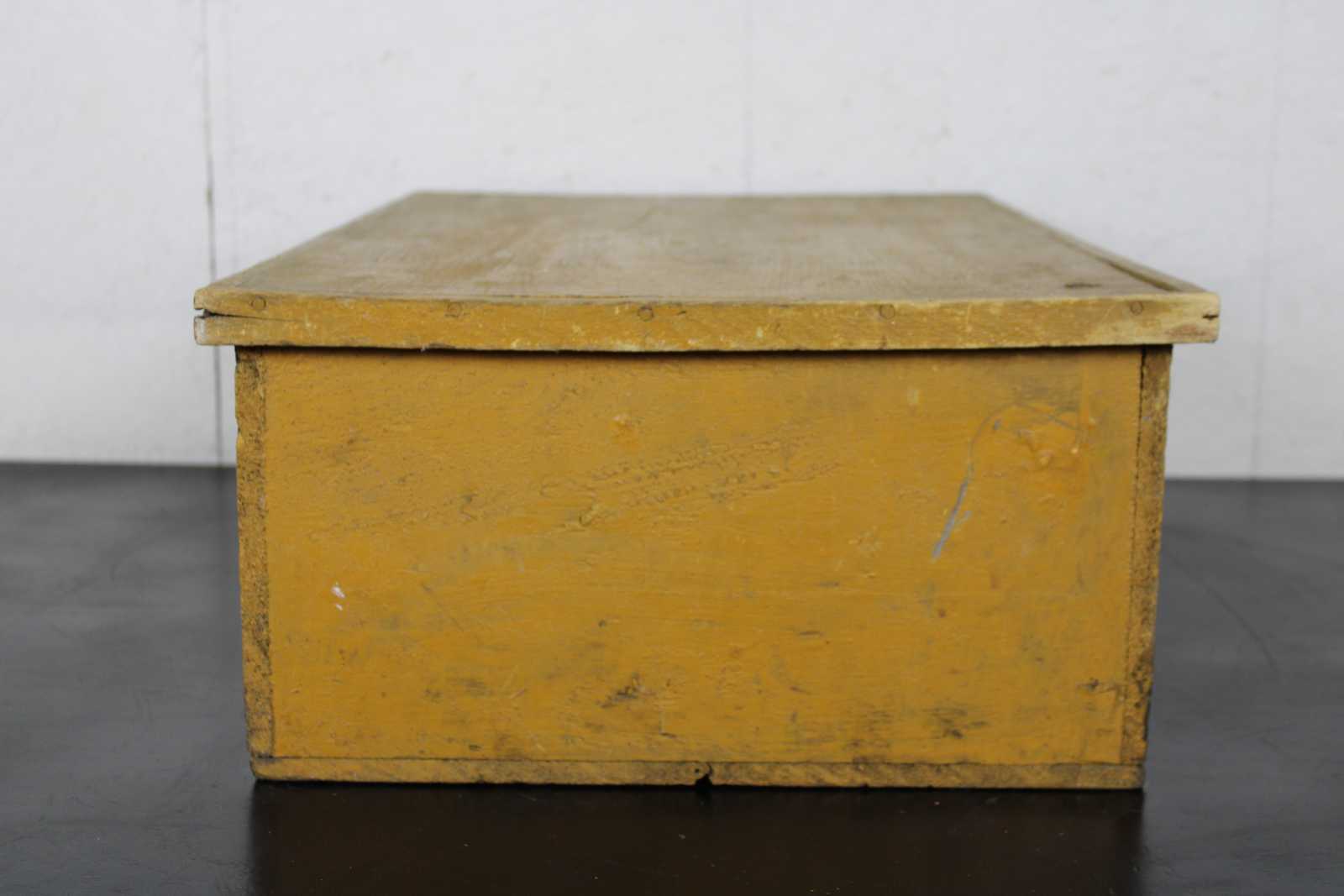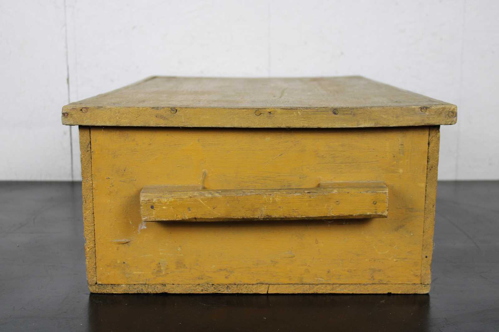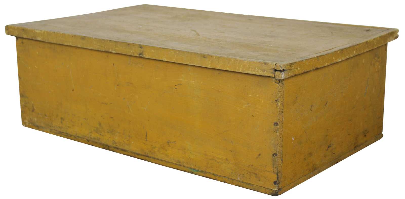 Antique primitive country farmhouse early American folk art style yellow painted pine toy or blanket chest / trunk.