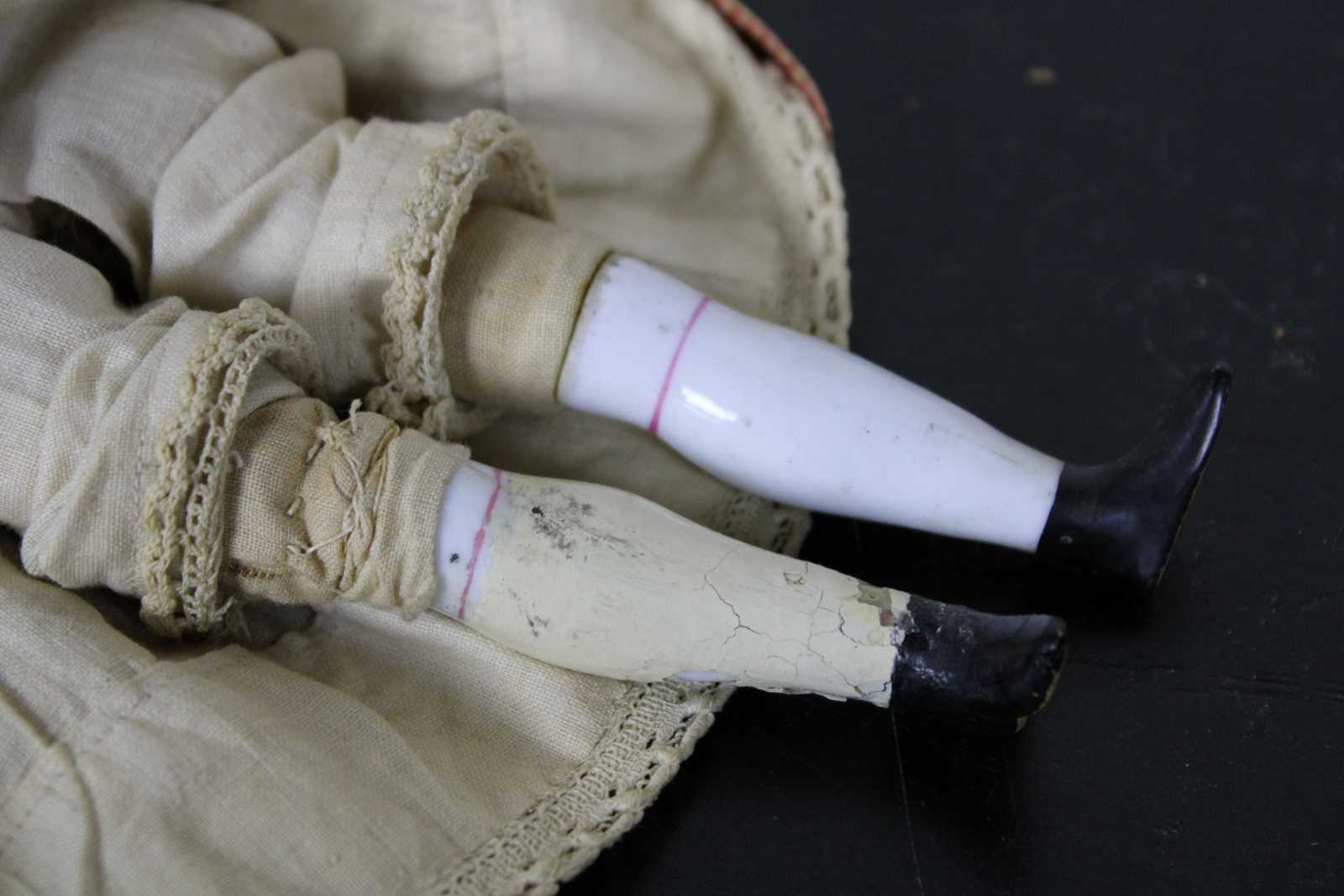 Good Overall - Heavy fading/some moth holes to dress; slight wear to paint on face; Chipping paint on one leg.