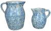 Two vintage Robinson Ransbottom Pottery, Roseville Ohio blue and white spongeware pitchers. R.R.P. USA. #700-R, 2qt.