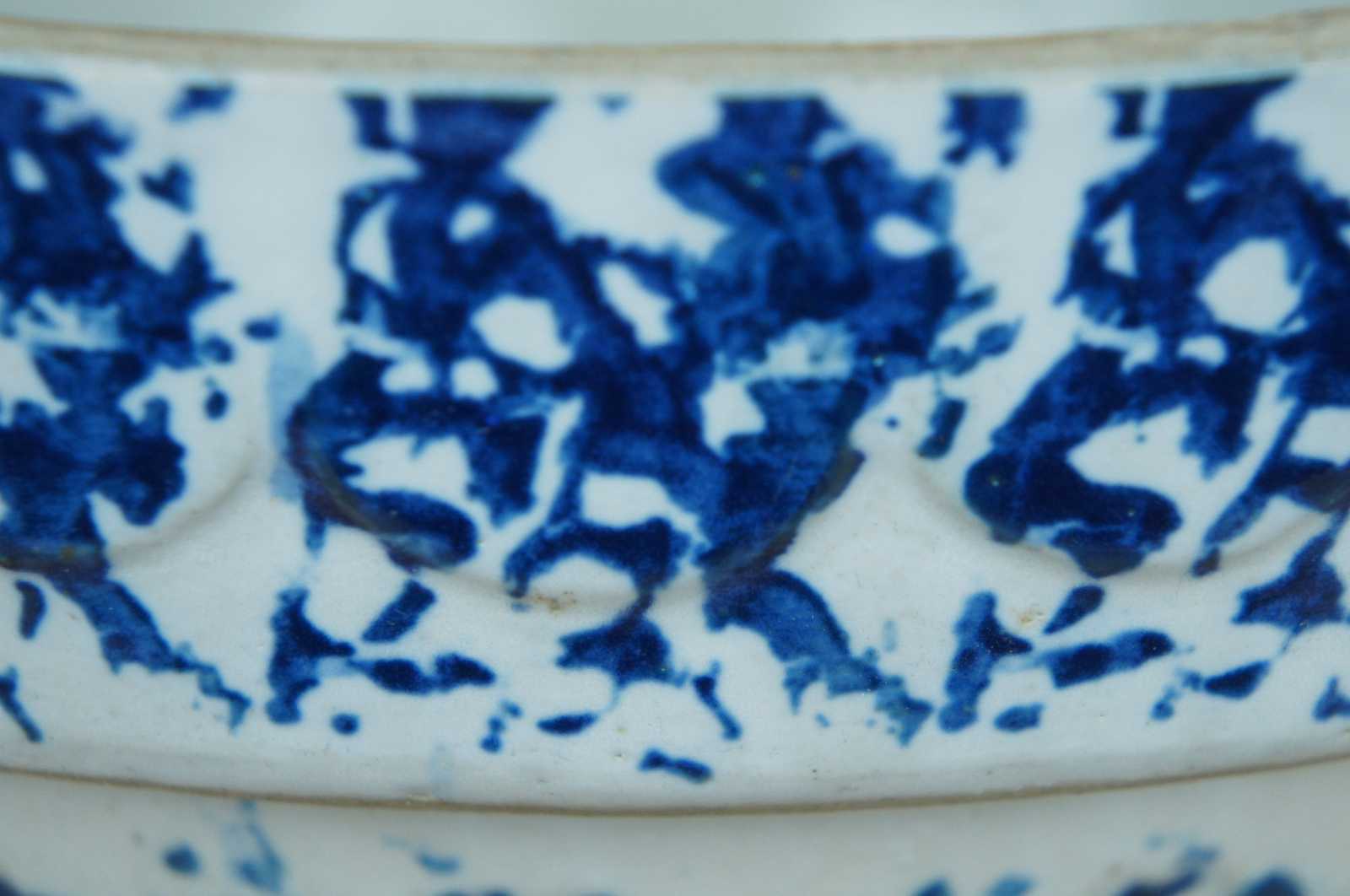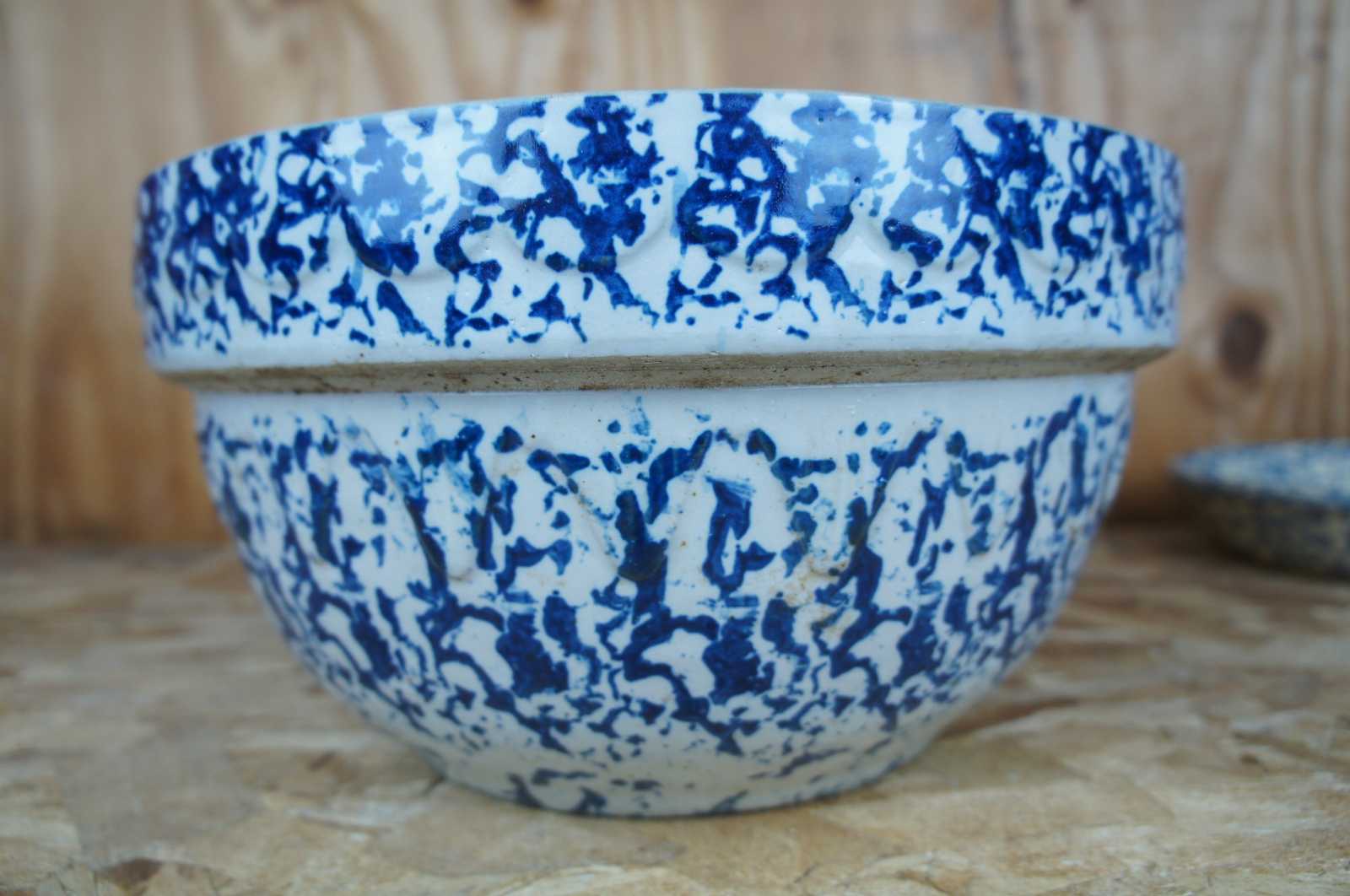 Two vintage spongeware pottery serving / mixing bowls. Attributed to Robinson Ransbottom Pottery of Roseville Ohio, RRP USA.