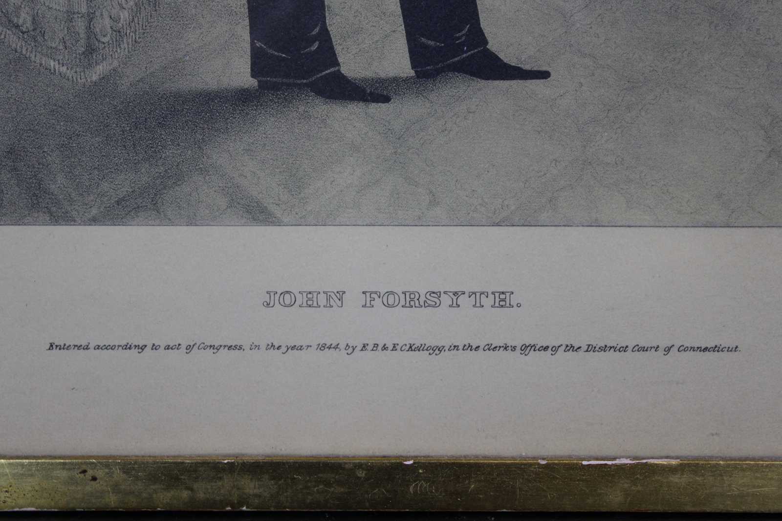 John Forsyth Sr. (October 22, 1780 – October 21, 1841) was a 19th-century American politician from Georgia. He represented the state in both the House of Representatives and the Senate, and also served as the 33rd Governor of Georgia. As a supporter of the policies of President Andrew Jackson, Forsyth was appointed secretary of state by Jackson in 1834, and continued in that role until 1841 during the presidency of Martin Van Buren.