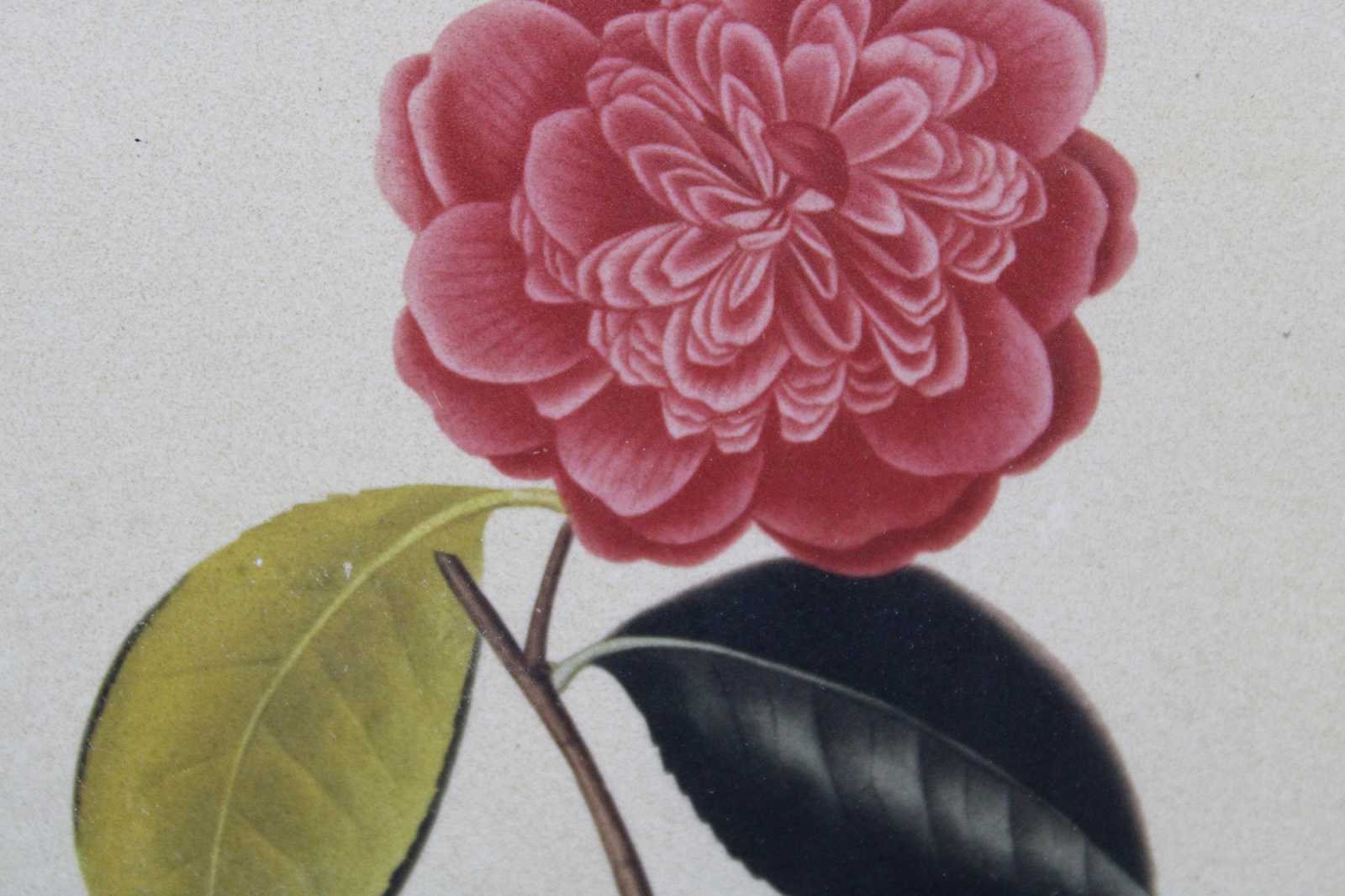 Camellias reached their peak in popularity in Europe between 1825 and 1870, during which time an enormous number of the seedlings obtained by crossing variants of Camellia japonica were raised and named, primarily by the Abbé Berlèse and two Belgian nurserymen. The most important and definitive work on camellias, Iconographie du Genre Camellia ou Description et Figures des Camellia Les Plus Beaux et Les Plus Rares depicts 300 varieties of camellias grown in the Berlèse's gardens and hothouses. Born in Campo Molino, for most of his career the wealthy Italian abbot worked in France where he studied, cultivated, and wrote about camellias. Drawings for these extremely rare, fine stipple engravings were made by the German artist Johann Jakob Jung (1819—1844).”