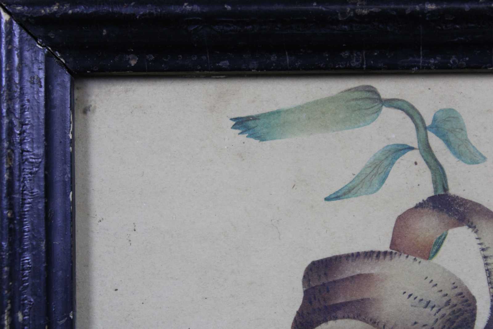 Antique botanical tiger lily watercolor painting in black wood frame.