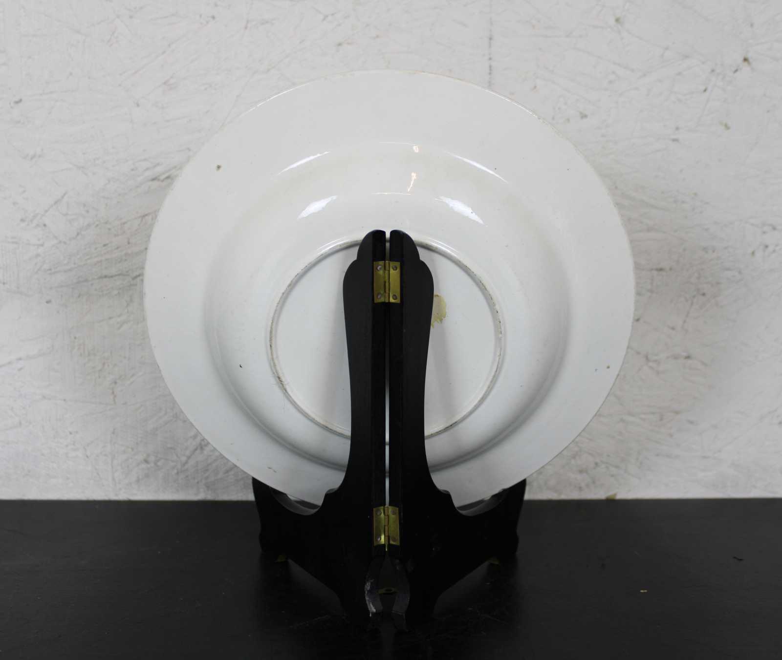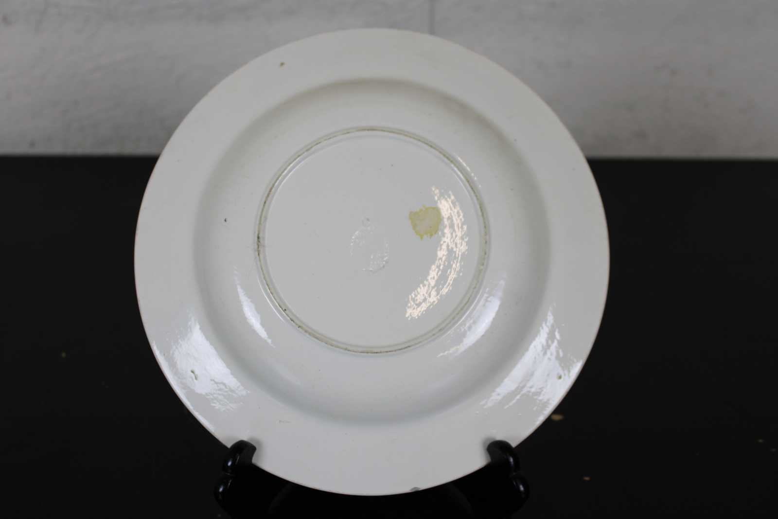 Antique hand painted folk art porcelain plate featuring pink roses and other flowers.