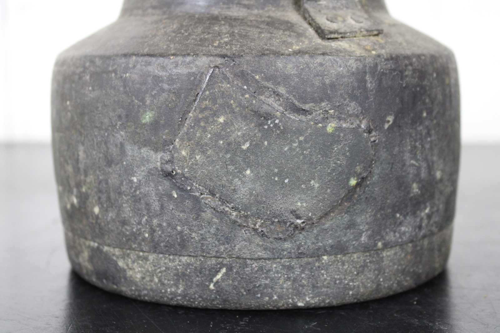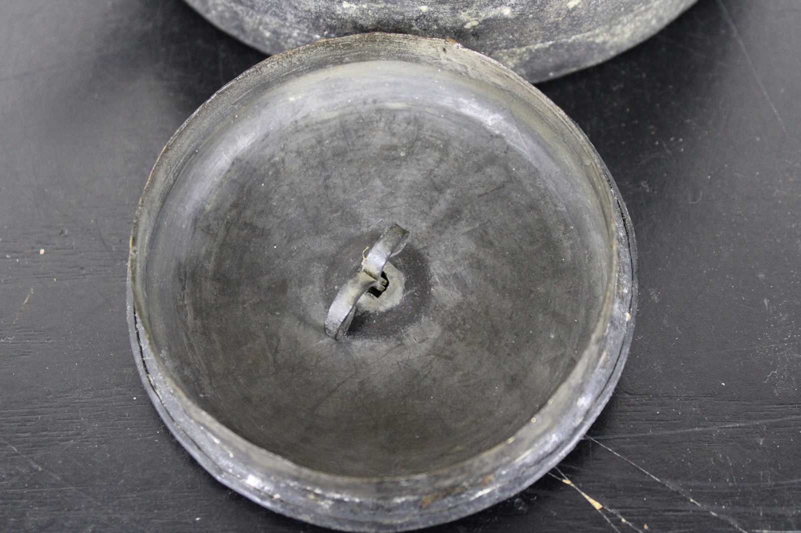 Good Overall - Dirt/tarnish to surface; patch on one side; small hole.