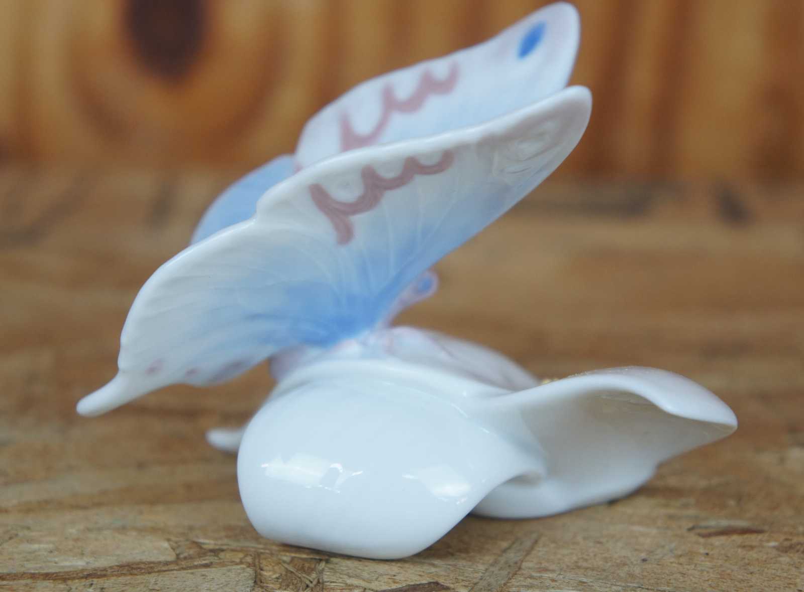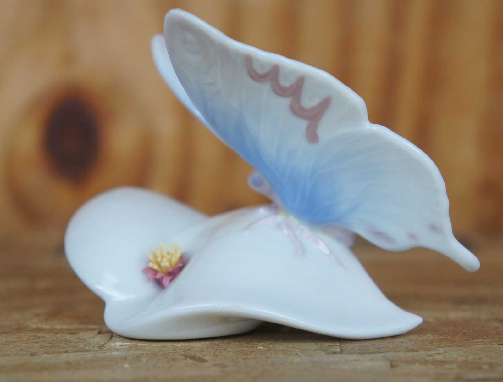 Lladró "Morning Calm" No 6589 butterfly on flower porcelain figure. Designed and handmade in Spain. Figure comes with original Lladró box.