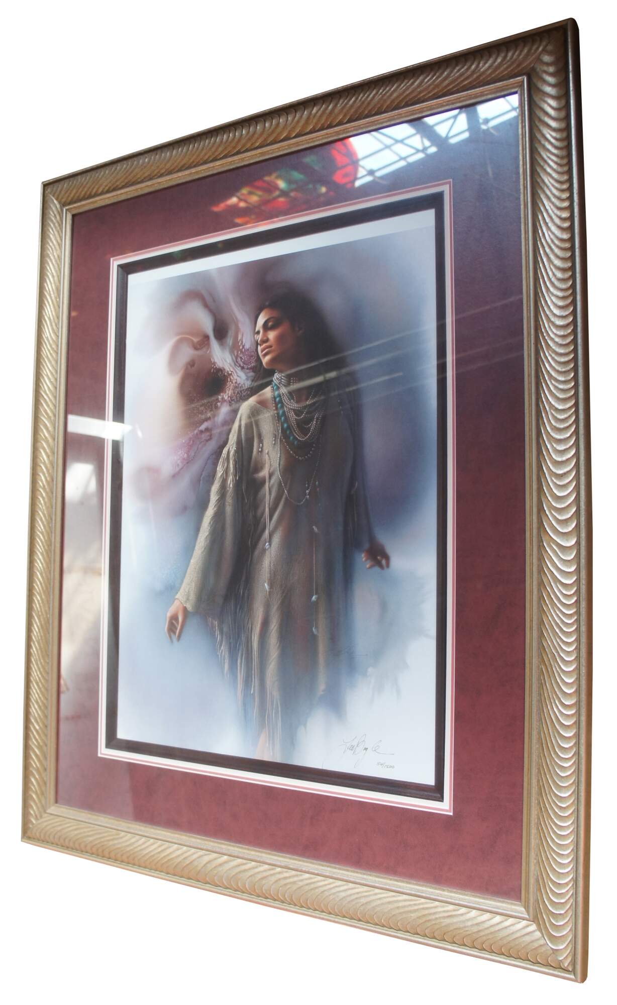 This numbered lithograph by artist Lee Bogle depicts a native american woman and is titled ‘Inner Peace’.
