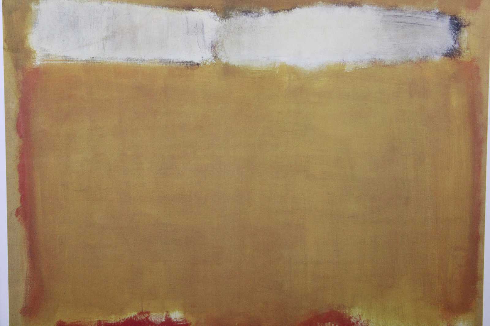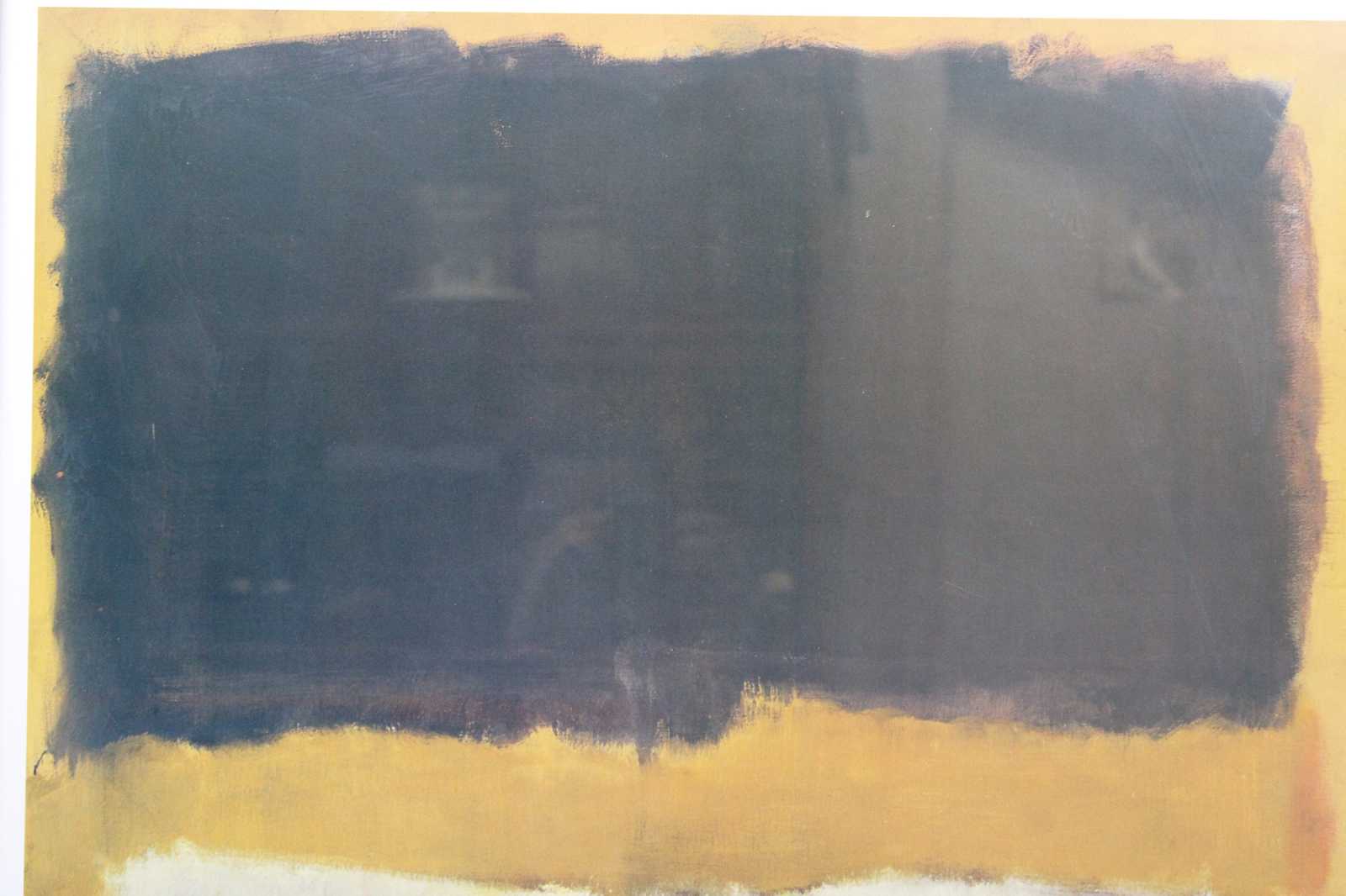 Mid century abstract expressionist print by Mark Rothko, No 24 , Tel Aviv, 1951. “Mark Rothko was born Marcus Rothkowitz in 1903 in Dvinsk, Russia. His father was a pharmacist. As a child he spoke Hebrew and Russian until he was ten years old; in 1913 he and his two sisters, Anna and Sonia, came to Portland, Oregon, where their parents had preceded them. They wore labels explaining that they did not speak English; he enrolled in Immigrant School. In 1921 he won a scholarship to Yale University; he was one of three immigrant seniors to get into Yale. He planned on becoming a labor leader. In 1923 he left Yale, moving to New York to work as a bookkeeper for an uncle. Somewhere along the way he disavowed his faith, struggling with a cultural identity developed against a hostile backdrop of anti-Semitism.
