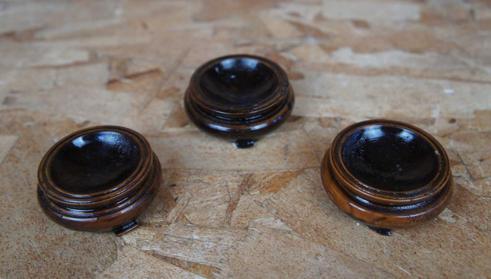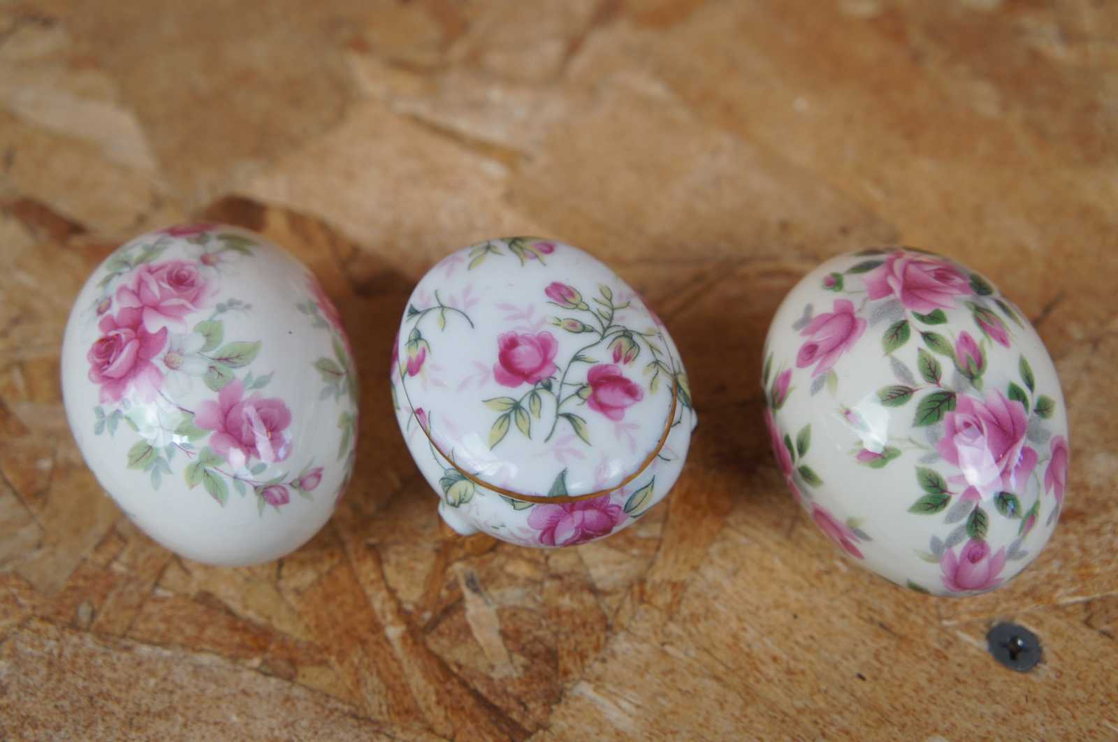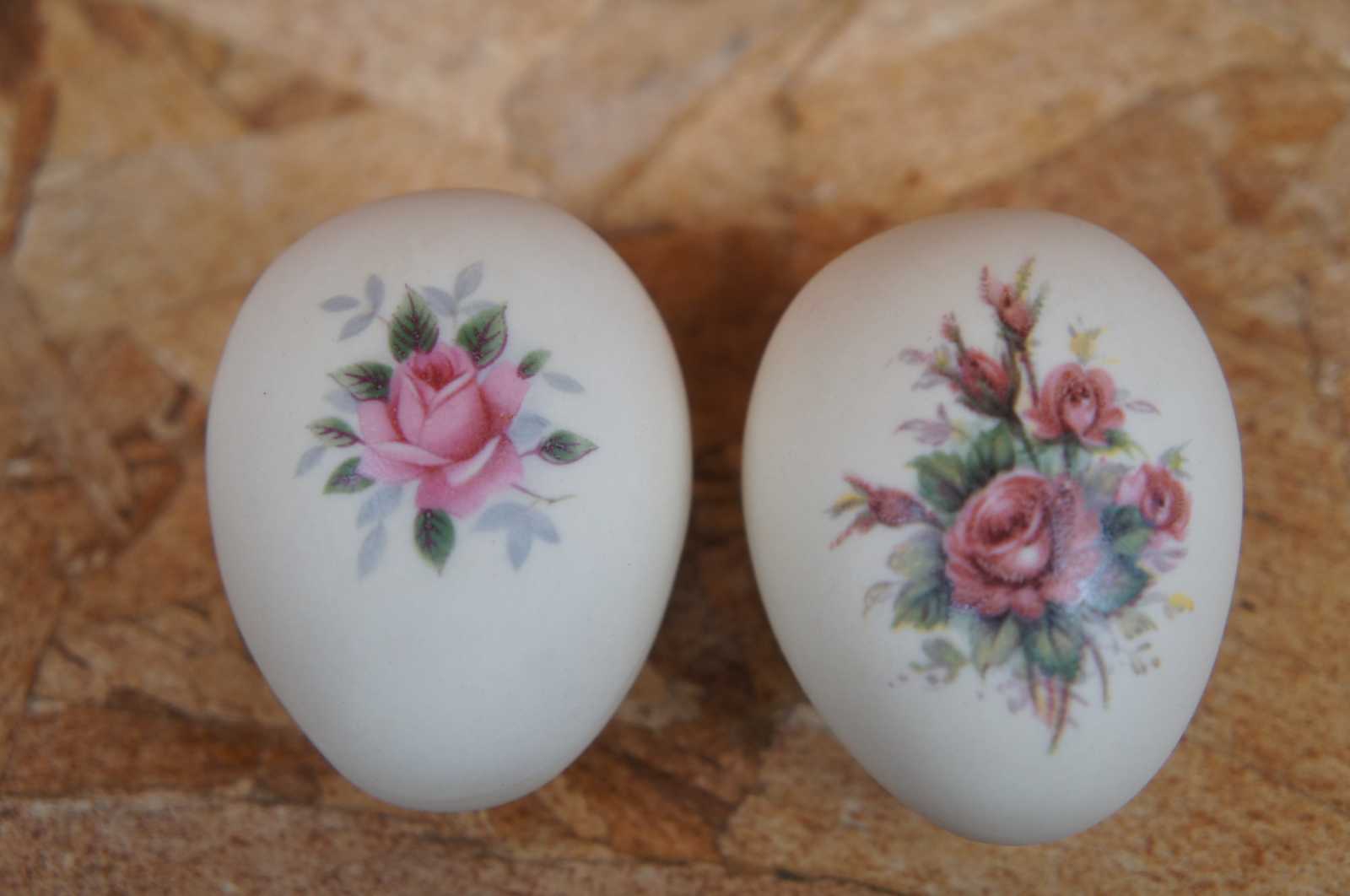 Good overall, wear and distressing commensurate with age and use, one is actually a covered dish and not an egg.