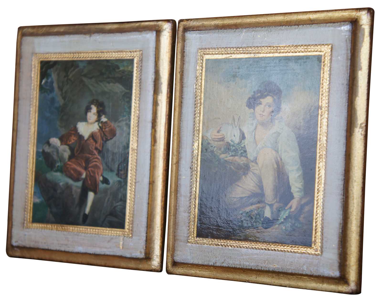 Two mid century prints featuring Victorian boys by Sir Henry Raeburn named Boy and Rabbit.