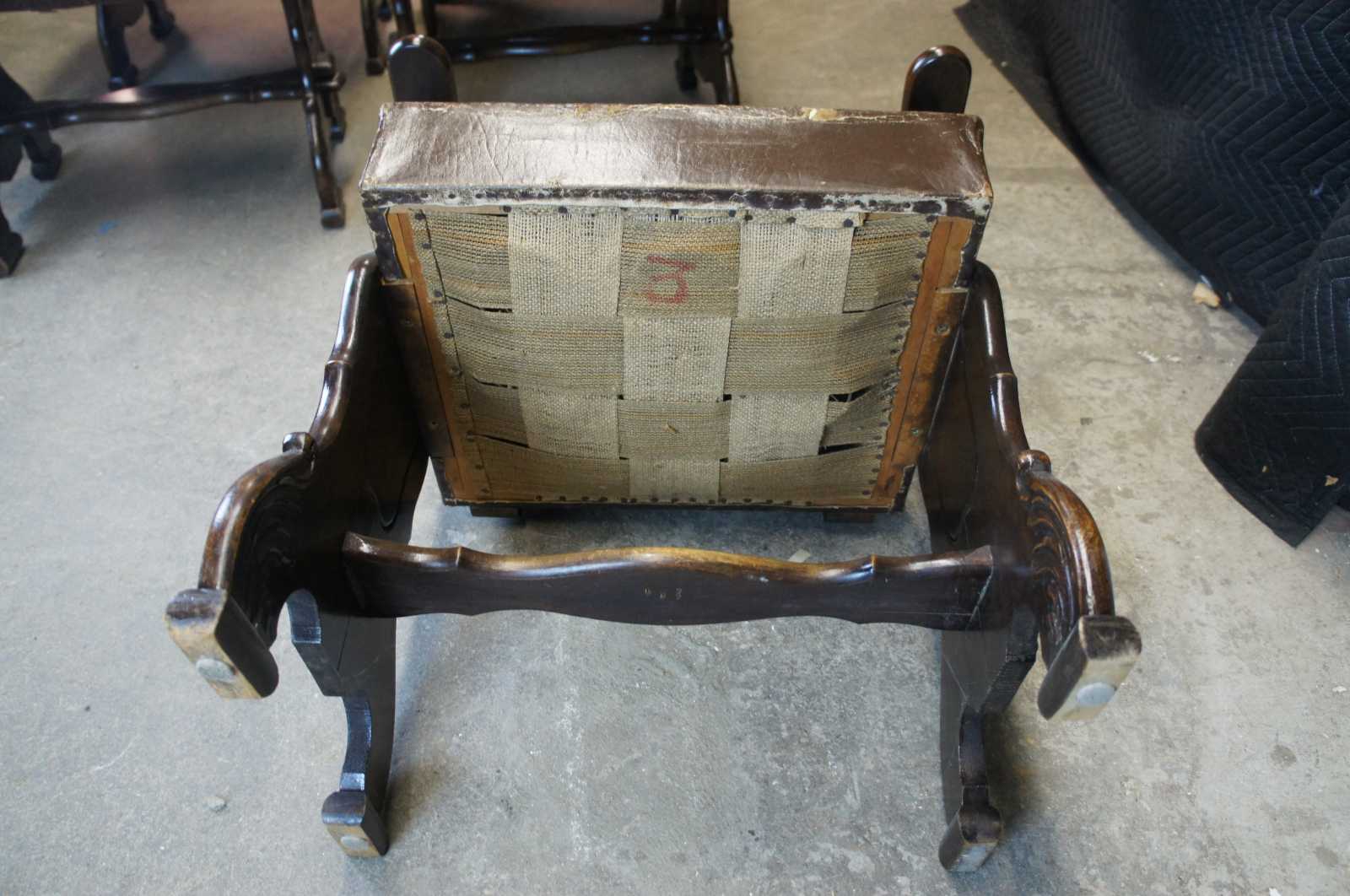 Very Good Structurally. Upholstery is worn with distressing, torn and crackling areas.