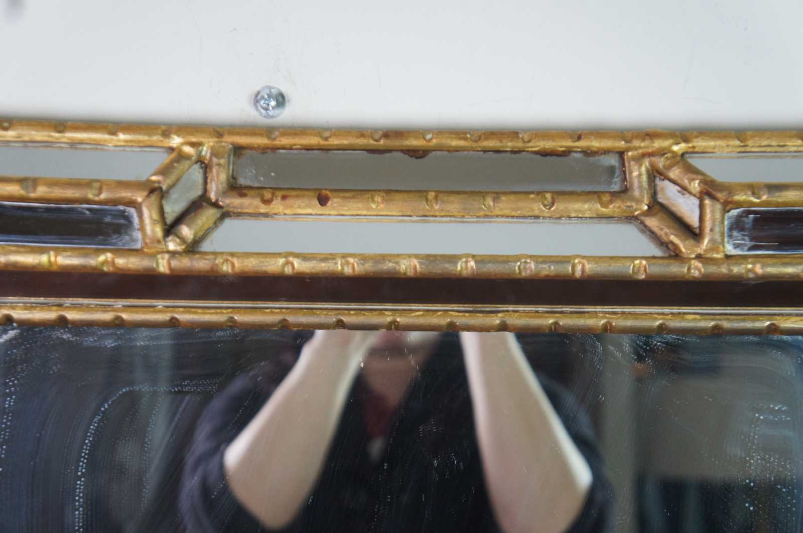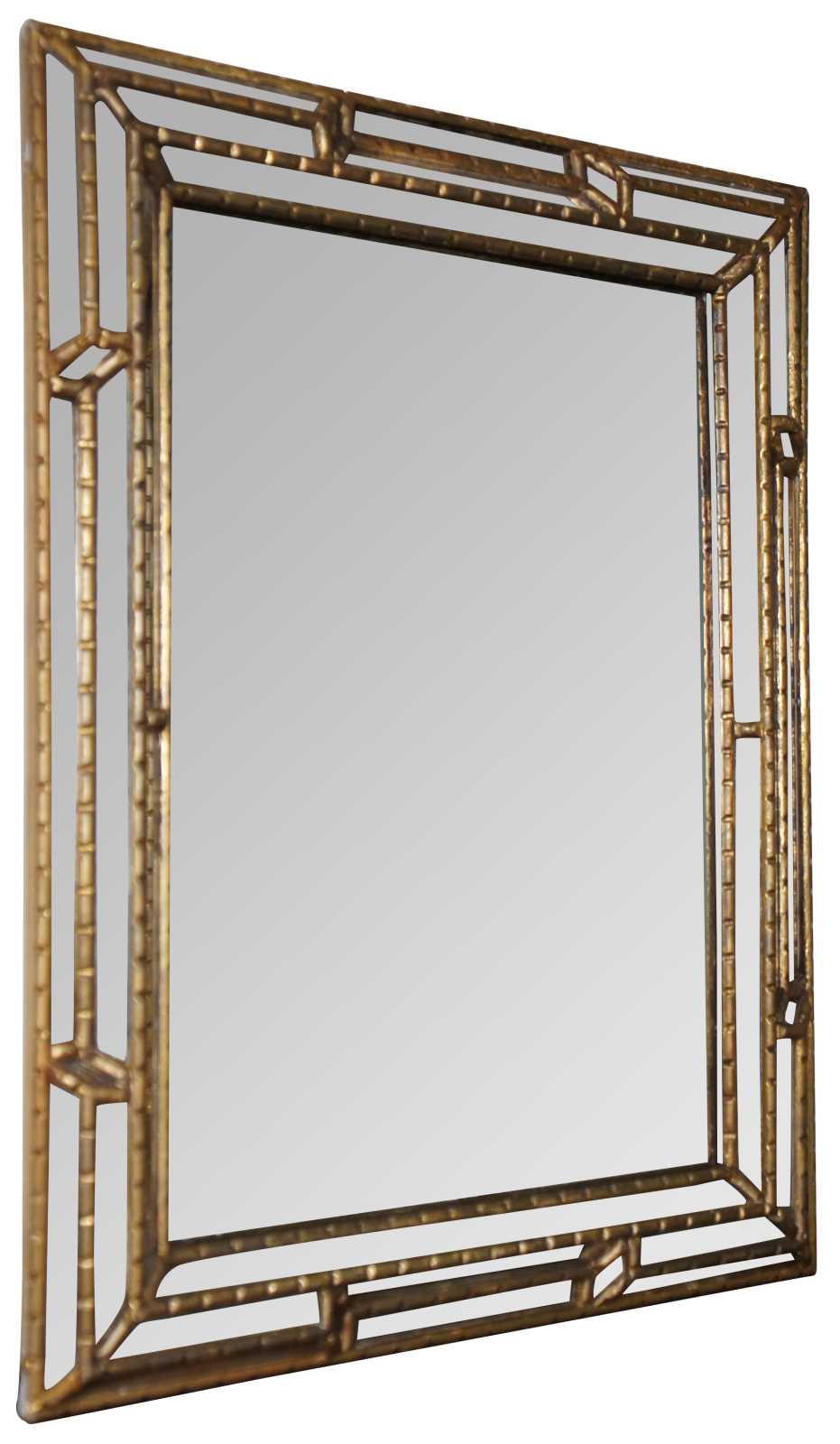 Vintage rectangular Venetian giltwood mirror with small beveled mirrored segments and carved bamboo style frame. Made in Italy.