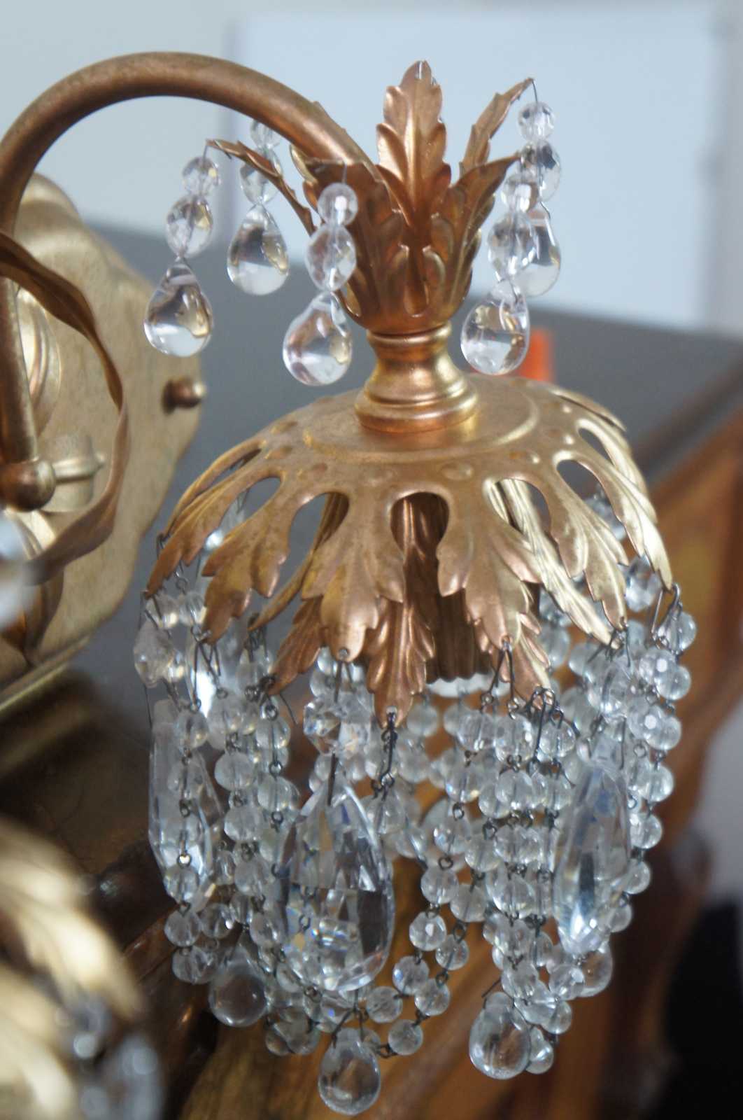 Vintage Schonbek Rondelle two light wall sconce with clear Swarovski vintage crystals, model 1255-26F, French Gold finish.