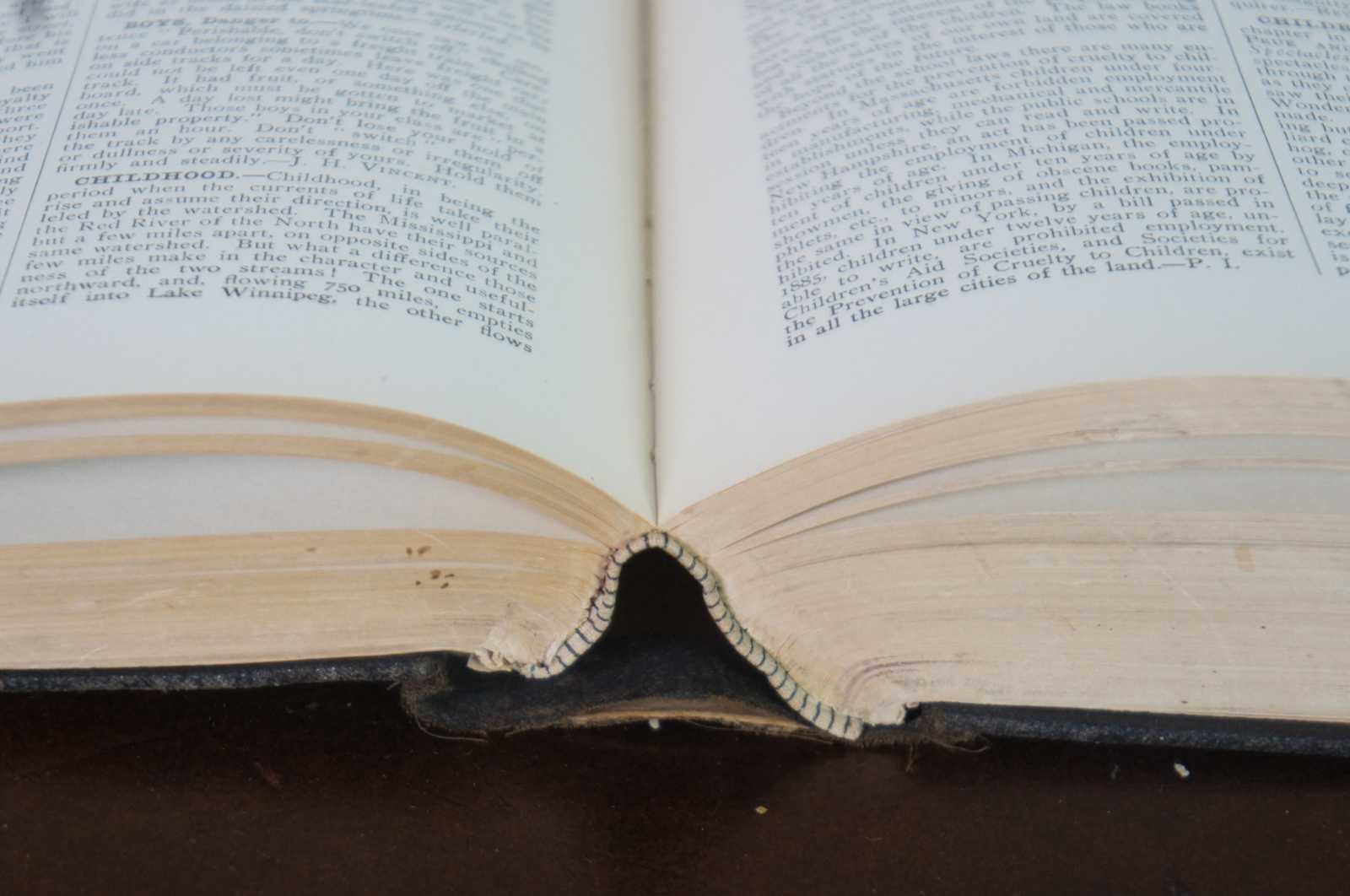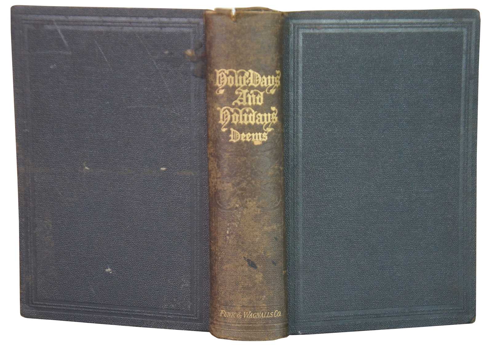 Antique leather bound hard cover copy of “Holy Days and Holidays: A Treasury of Historical Material, Sermons in full and in Brief, Suggestive Thoughts, and Poetry relating to Holy Days and Holidays” compiled by Edward M. Deems, published by Funk & Wagnalls Company, 1902.