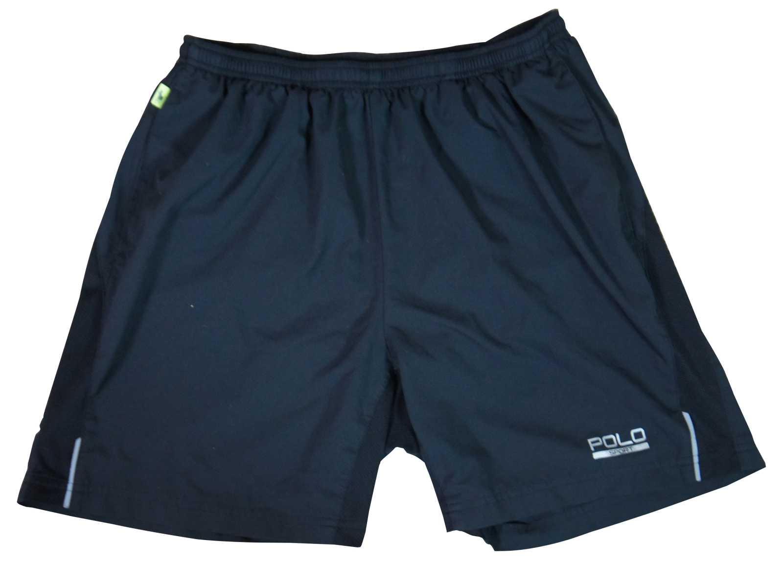 Set of three Polo Sport by Ralph Lauren, men’s athletic shorts in black, navy, and blue.