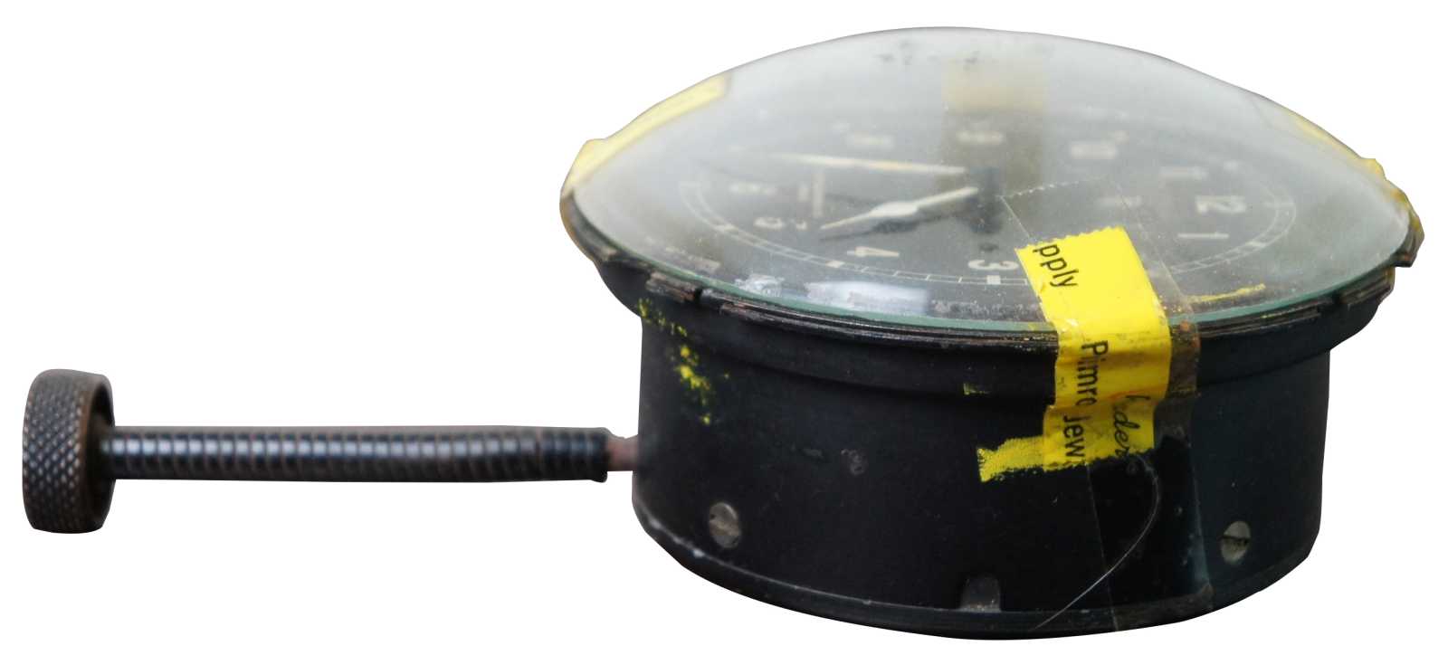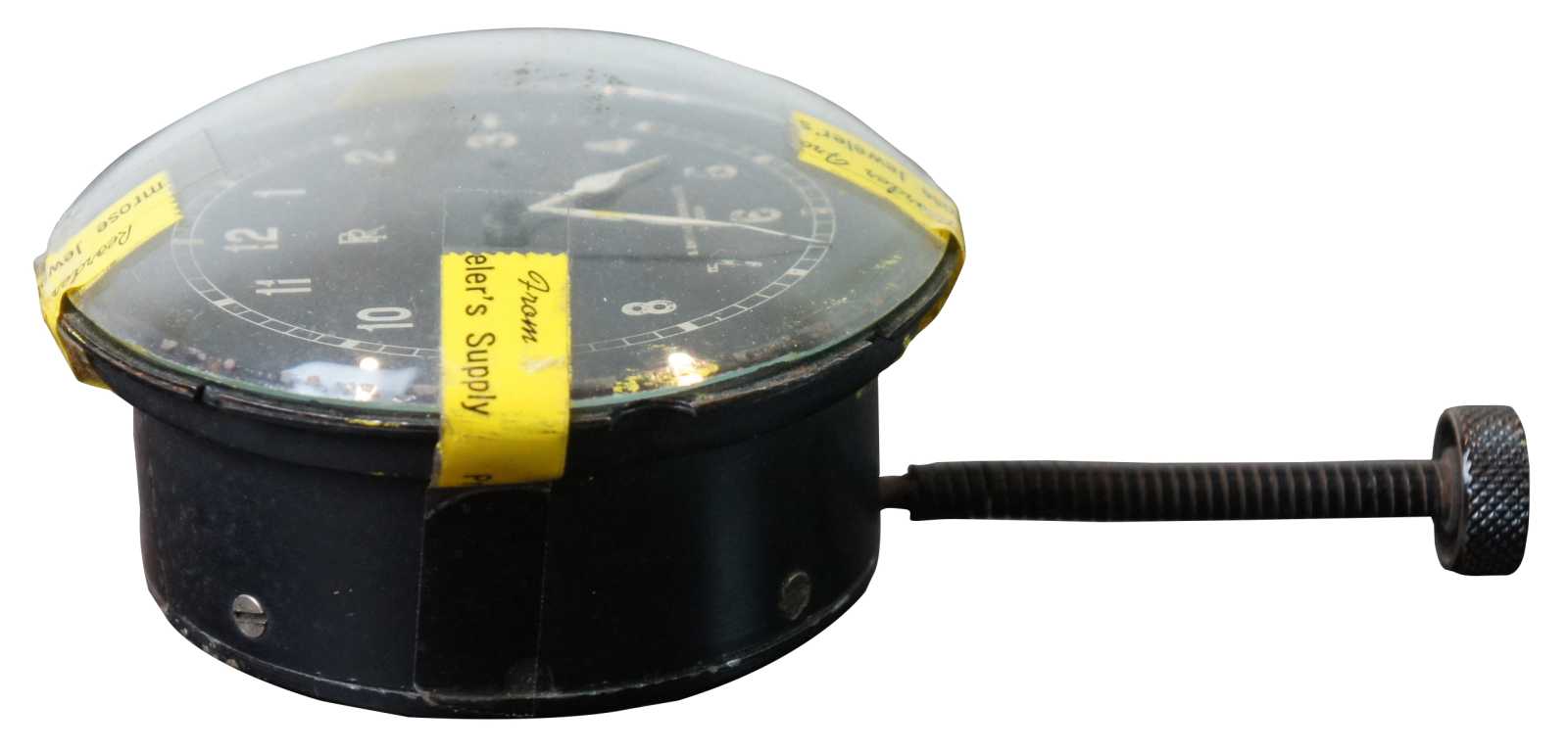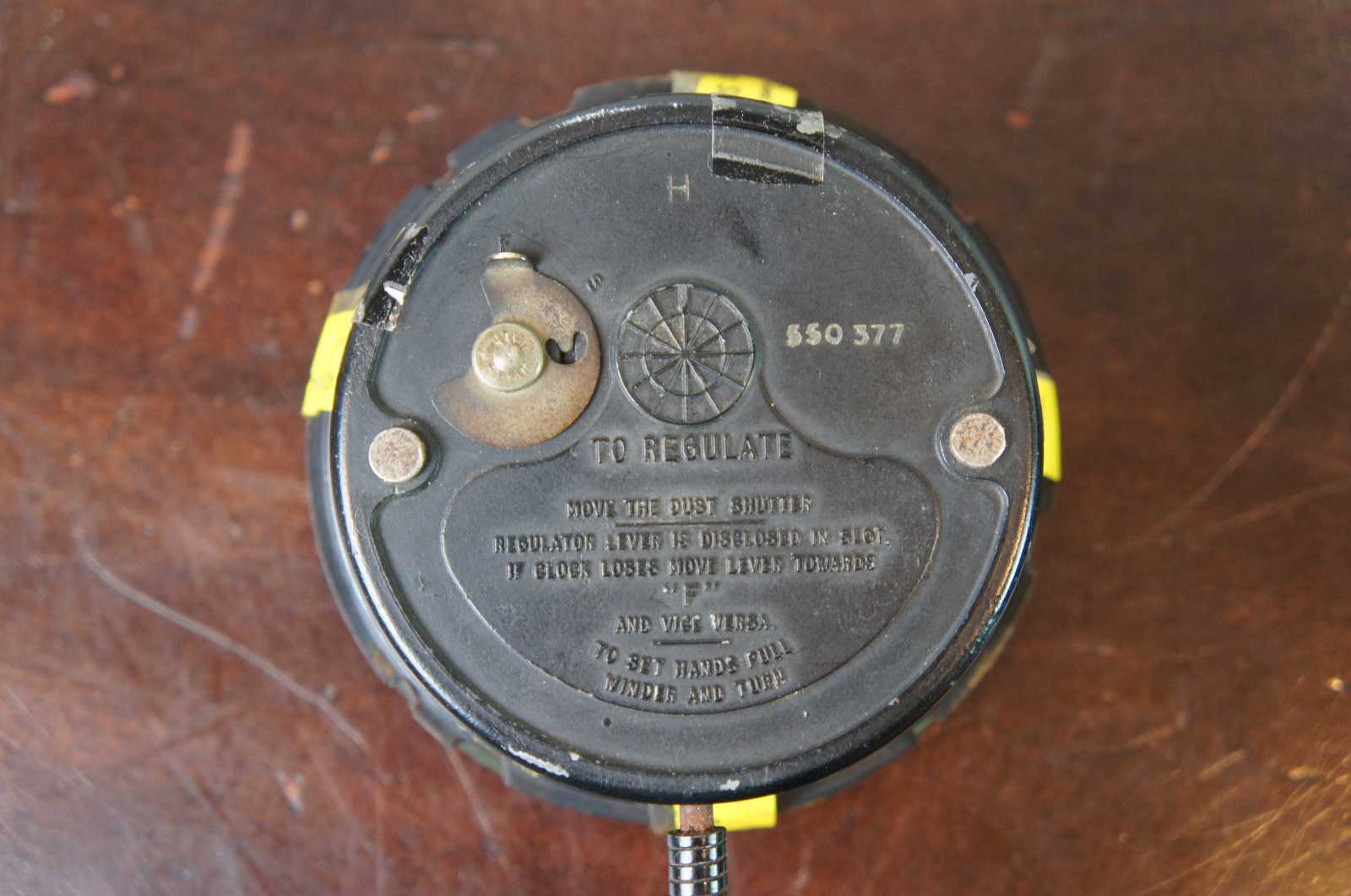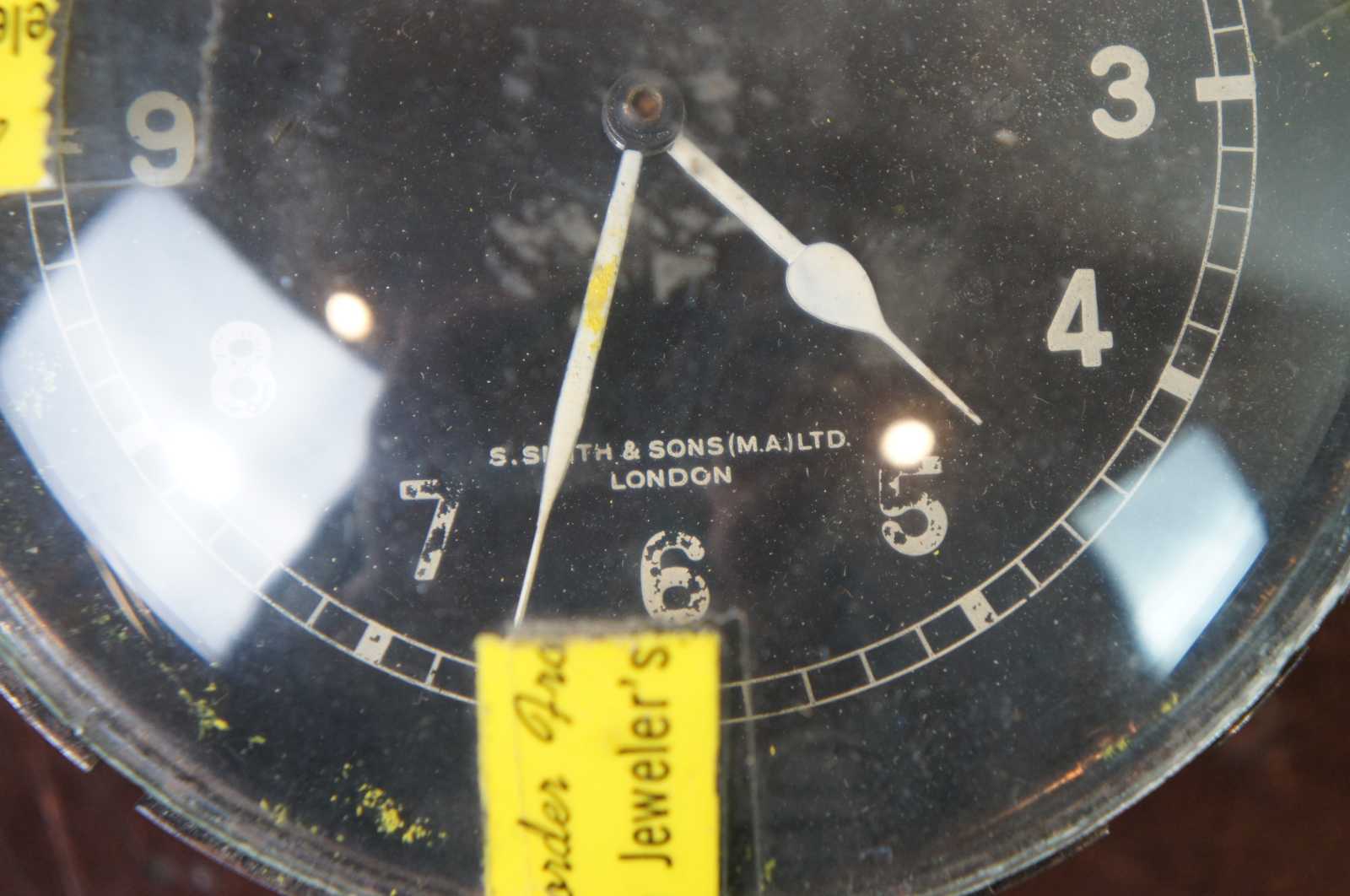 Antique 1930s Rolls Royce clock by S. Smith & Sons LTD of London England. Featurs a black face with convex glass. Marked 550 377 on back.