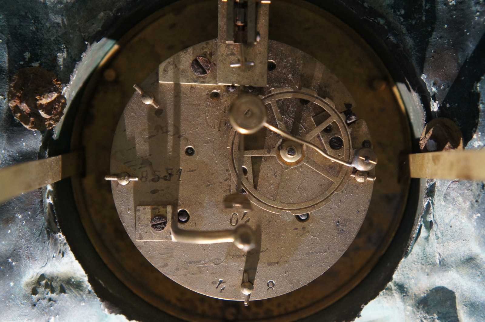 Good antique condition, wear and distressing commensurate with age and use, slight bending to arms, working.