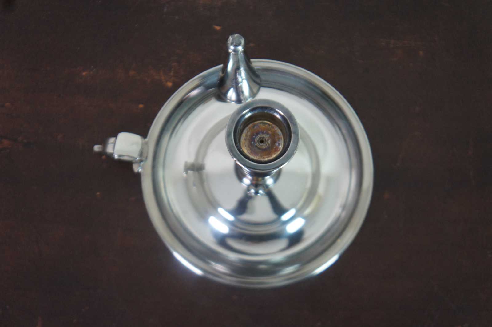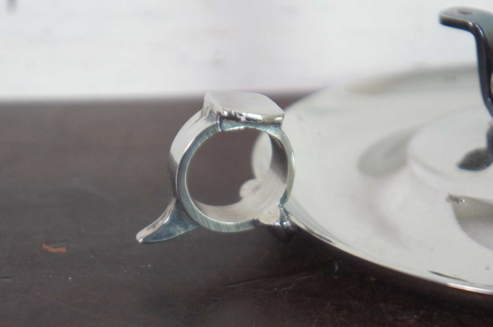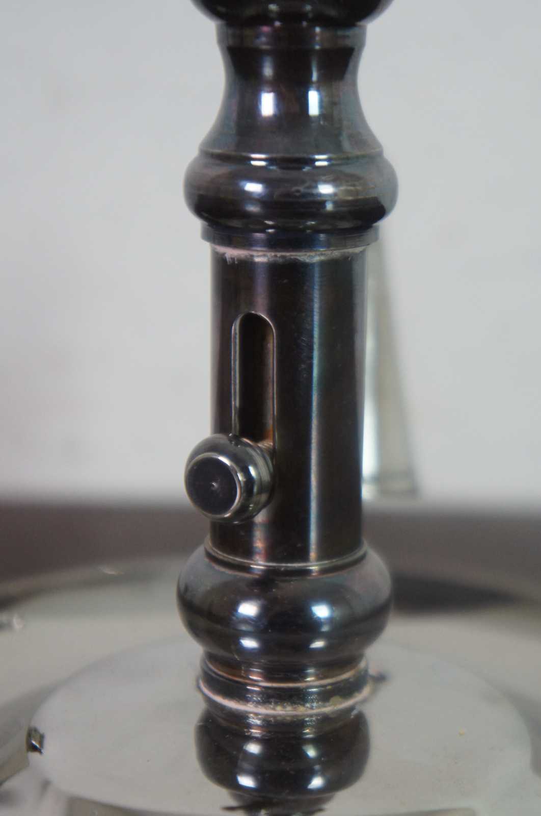 Antqiue English Georgian silver plate chamber candlestick with ring handle, snuffer, and push up mechanism to raise the candle as it burns down.