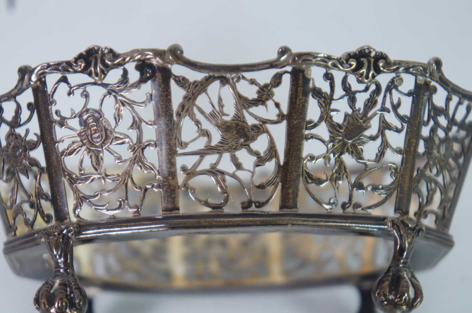 Antique Scottish Sterling Silver Reticulated Claw Foot Bird Basket Compote Bowl