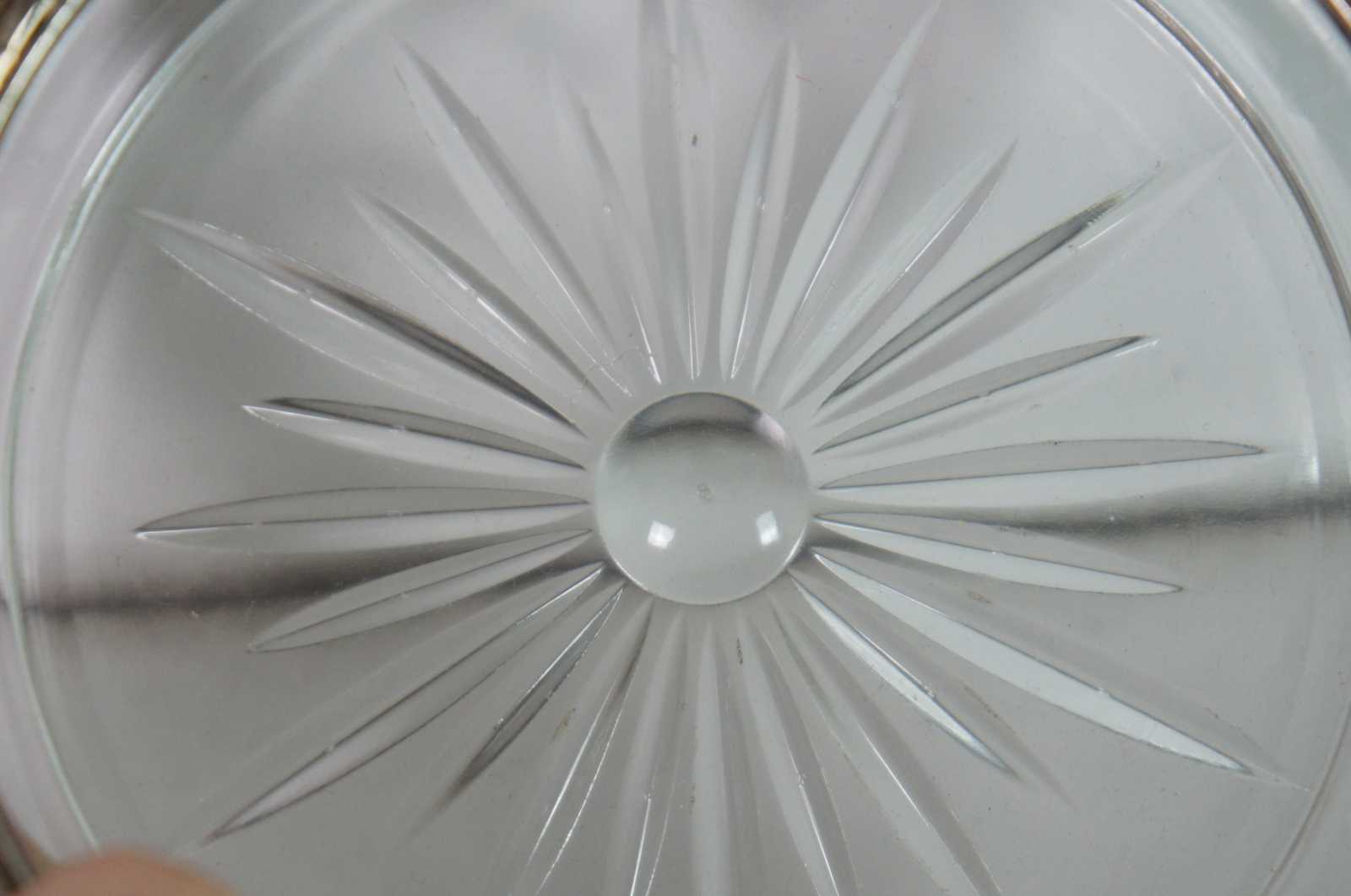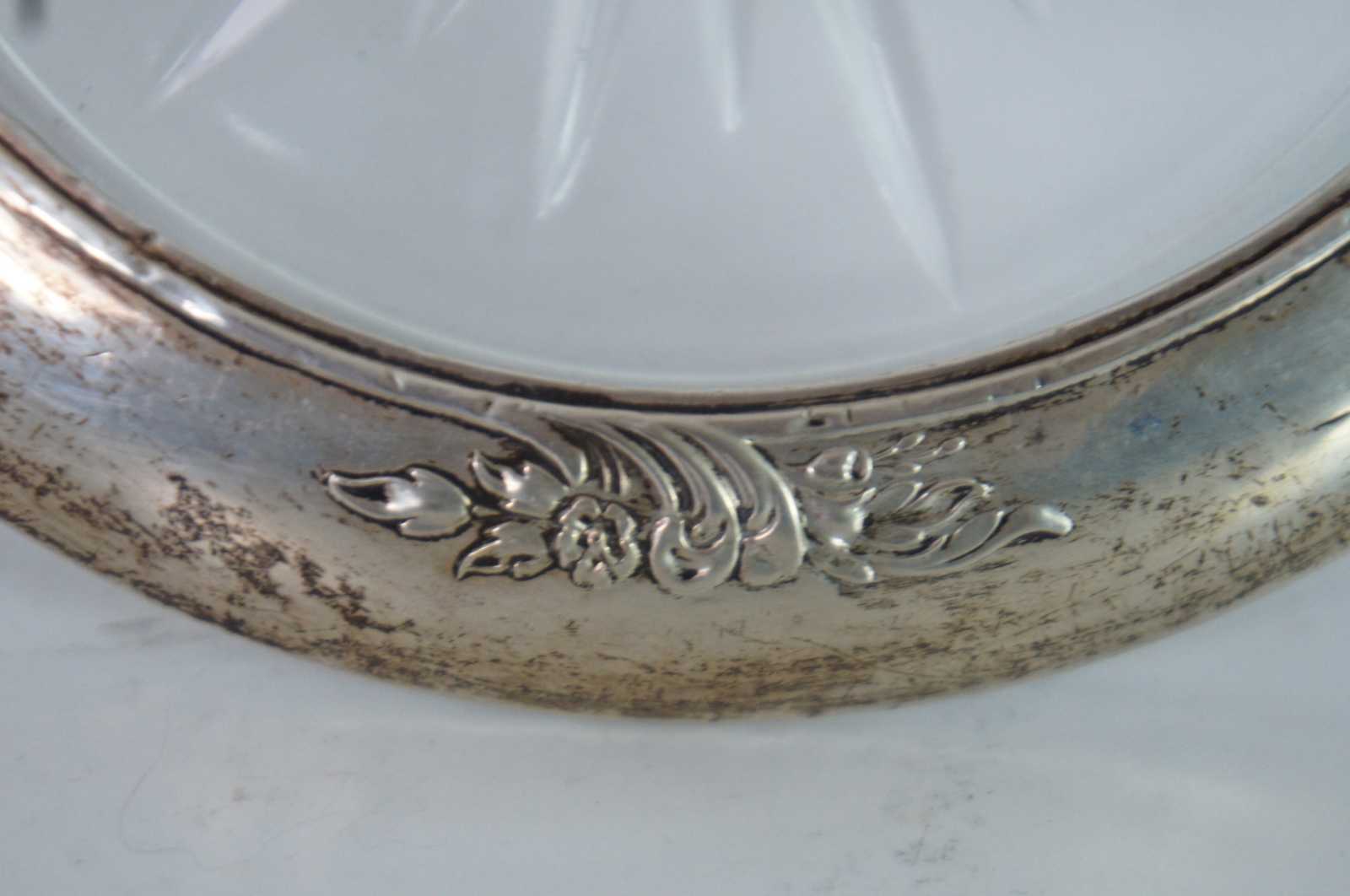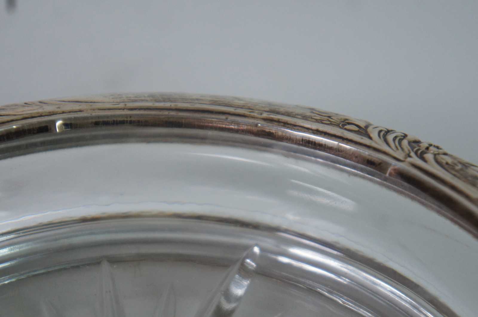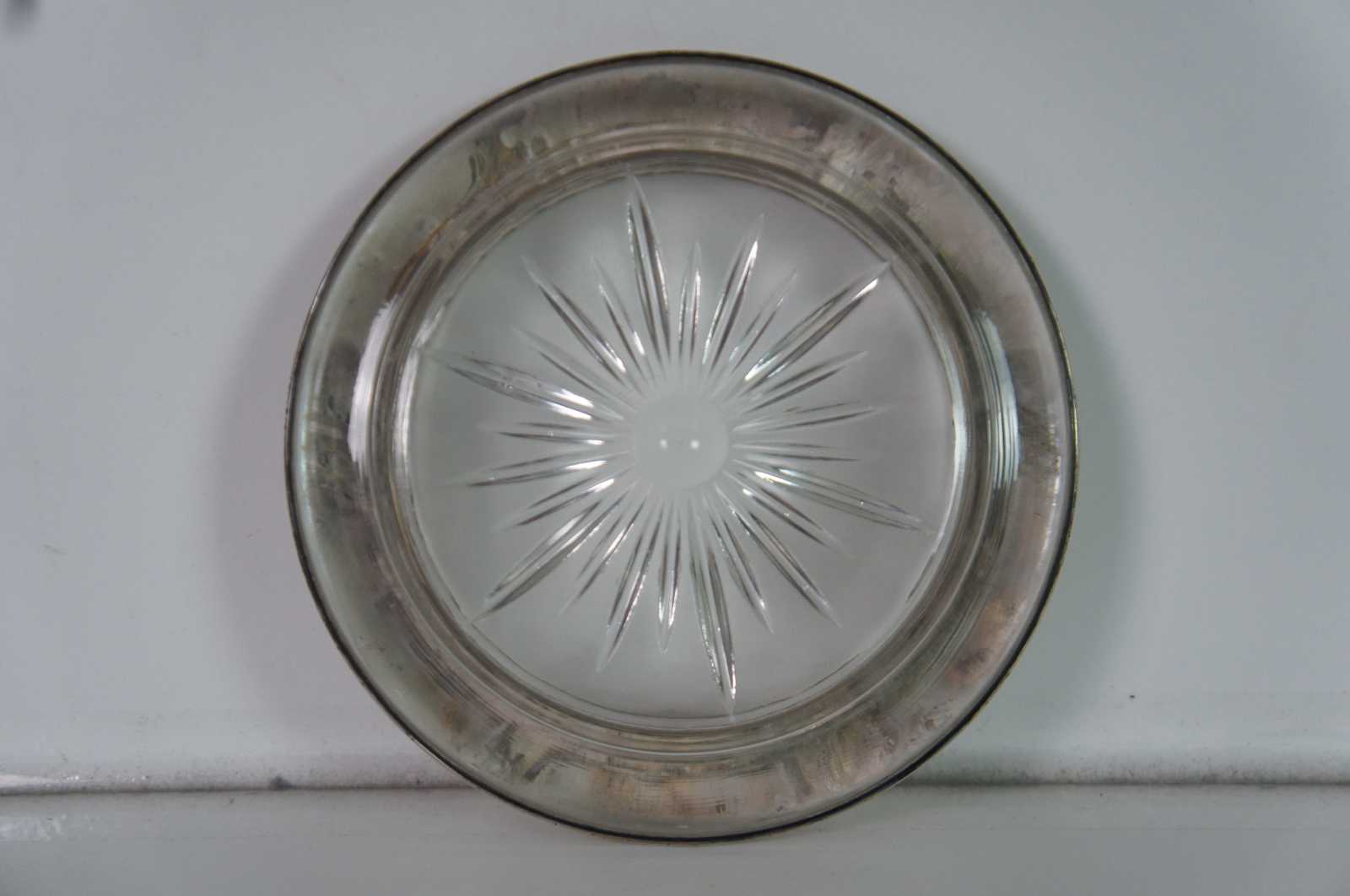 Antique Frank M. Whiting & Co cut glass and sterling silver 925 coaster / dish or ashtray, number R60, decorated with springs of flowers and leaves.