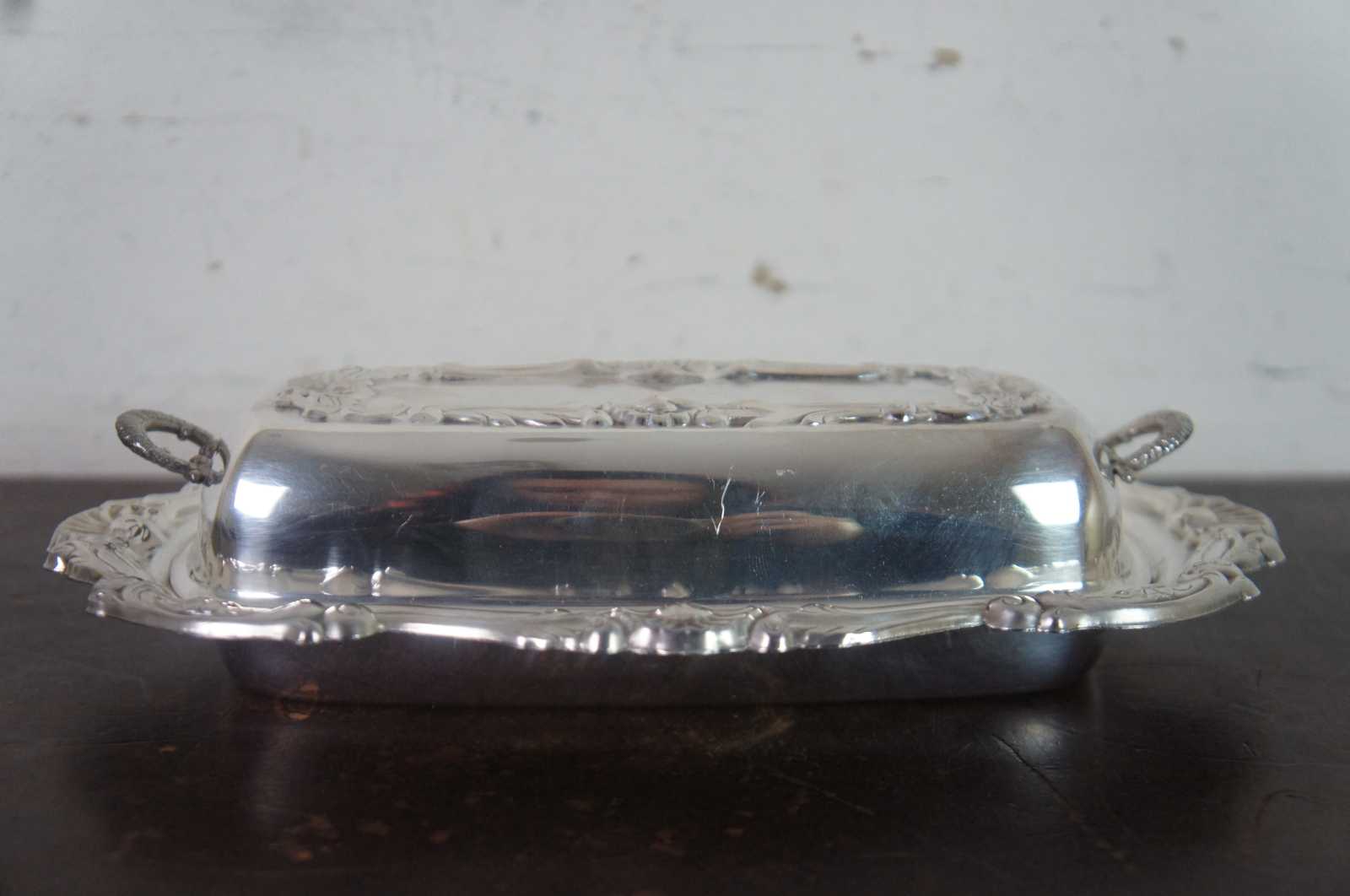 Vintage Bristol silver plate butter dish with ornate scalloped shell design and glass insert.