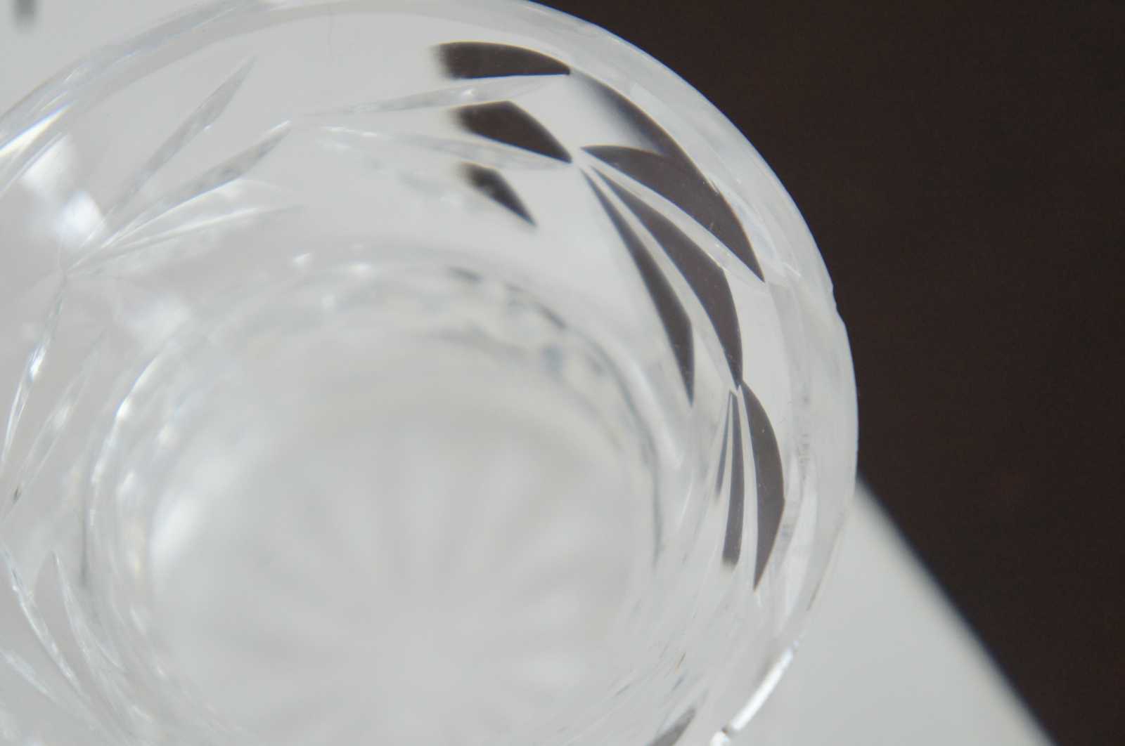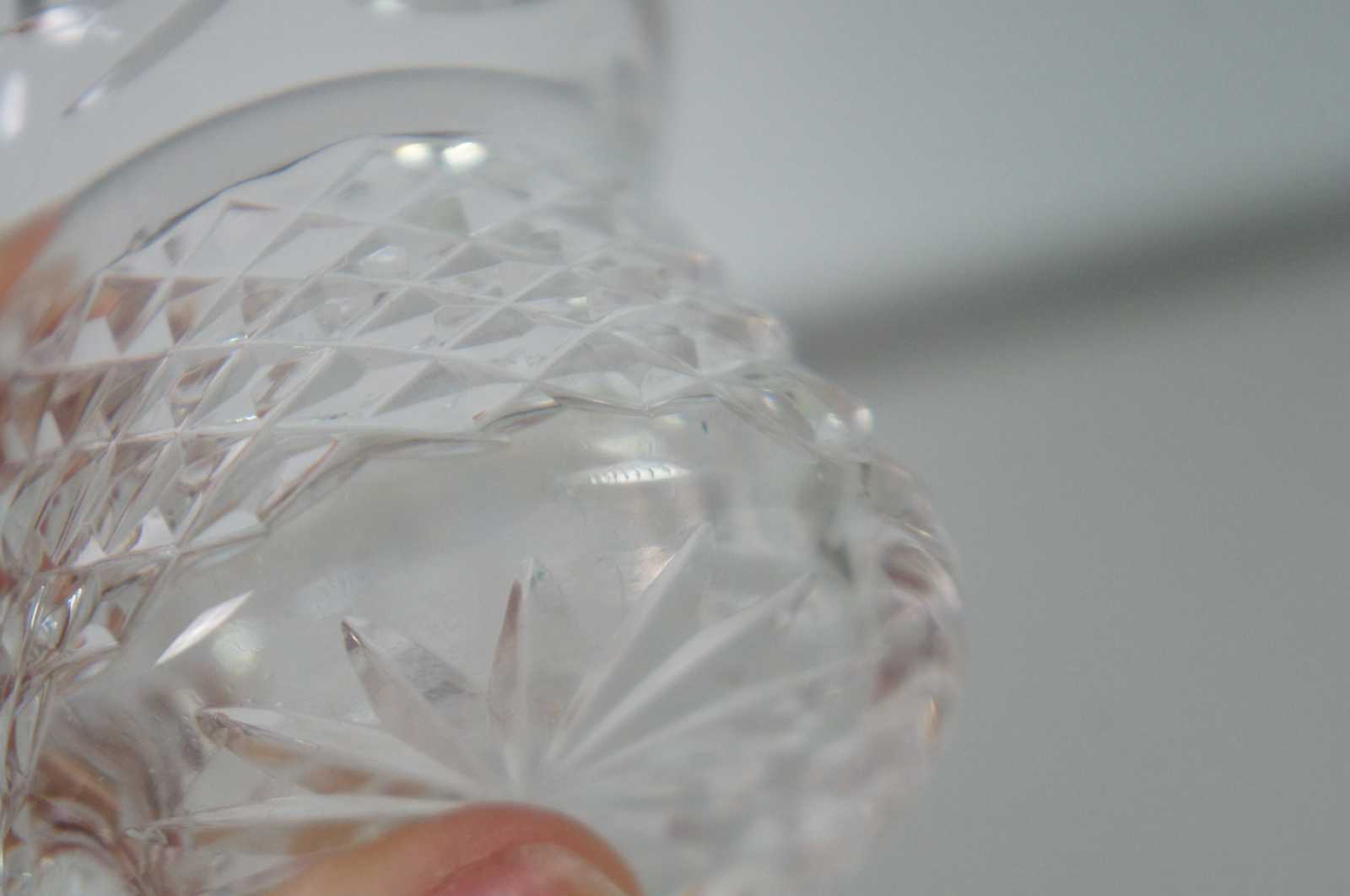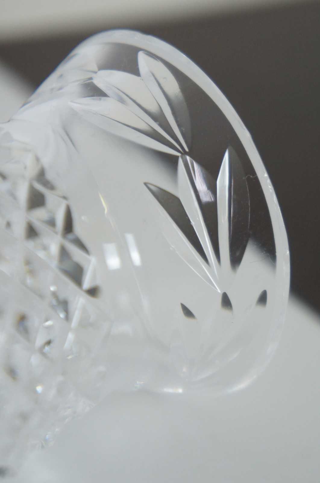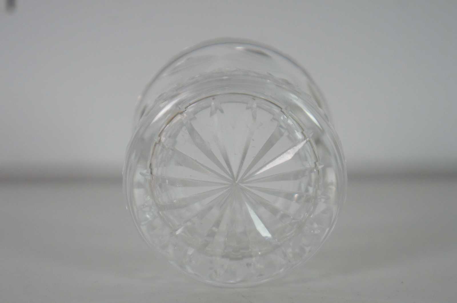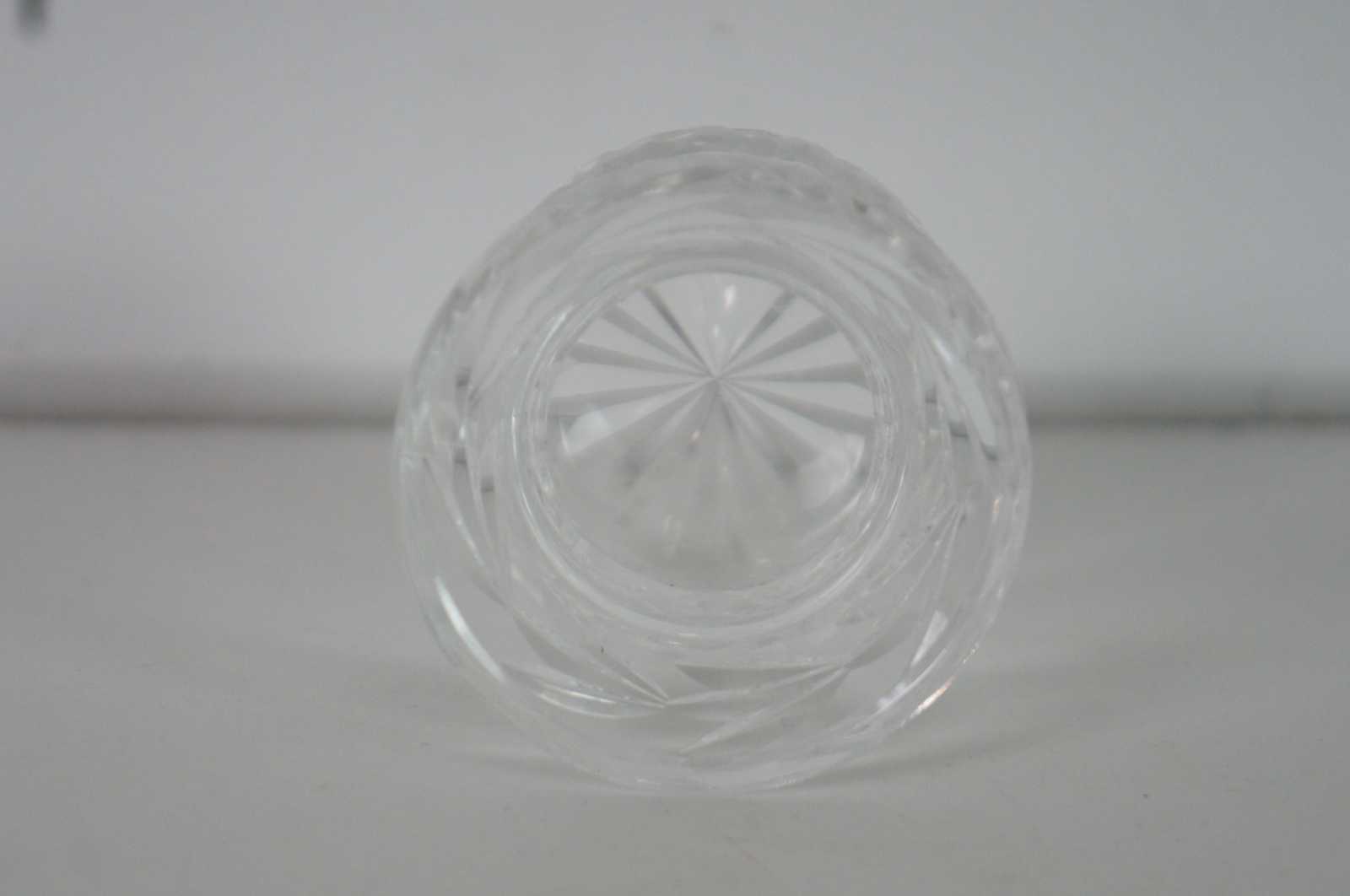 Short and stout vintage Waterford crystal bud vase in the Glandore pattern.