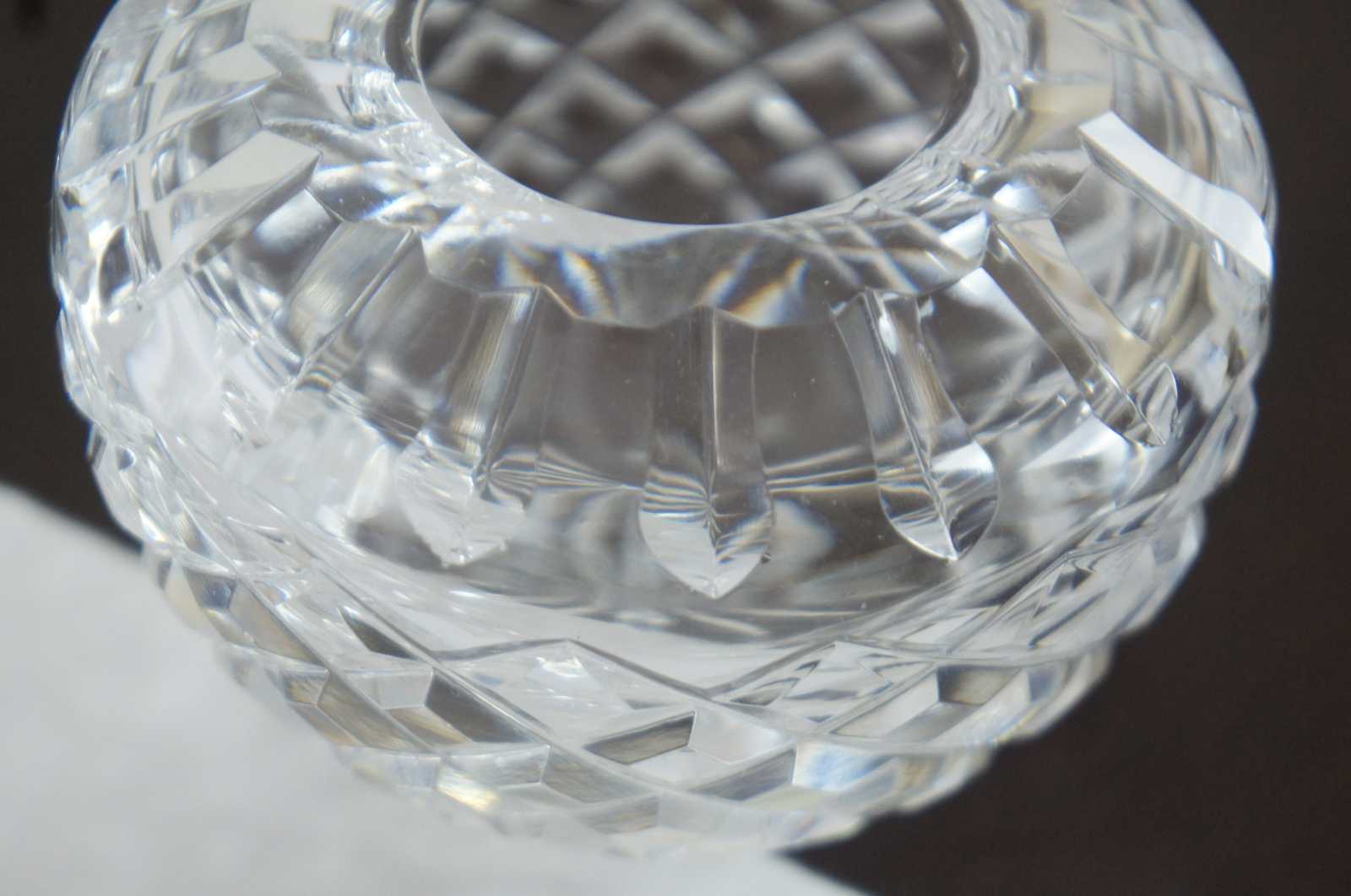 Vintage Waterford crystal orb shaped bud vase or rose bowl in the Lismore pattern.