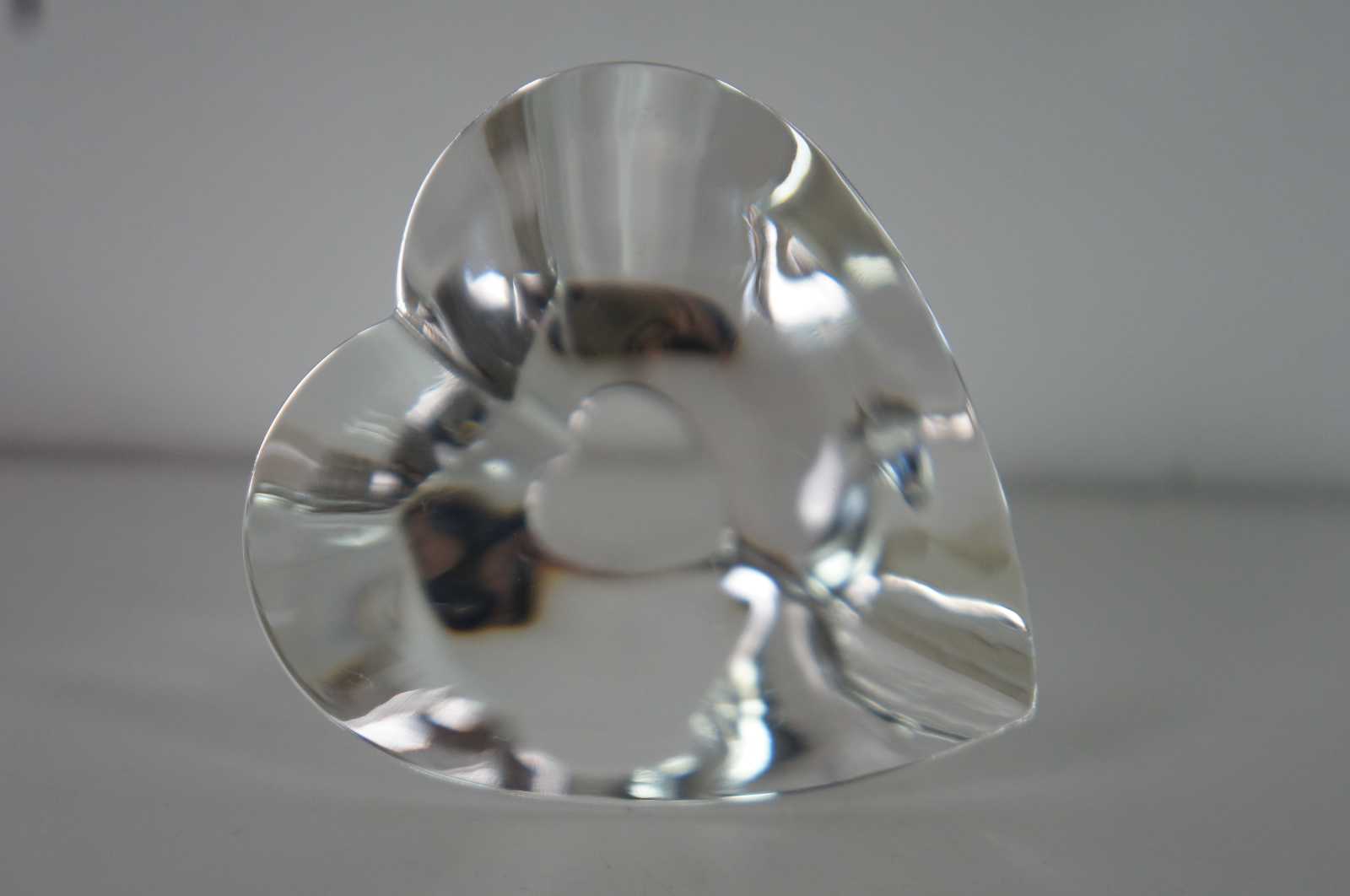 Vintage 1980s three dimensional heart throb prism paperweight or hand chiller designed by Eric Hilton. 8566.