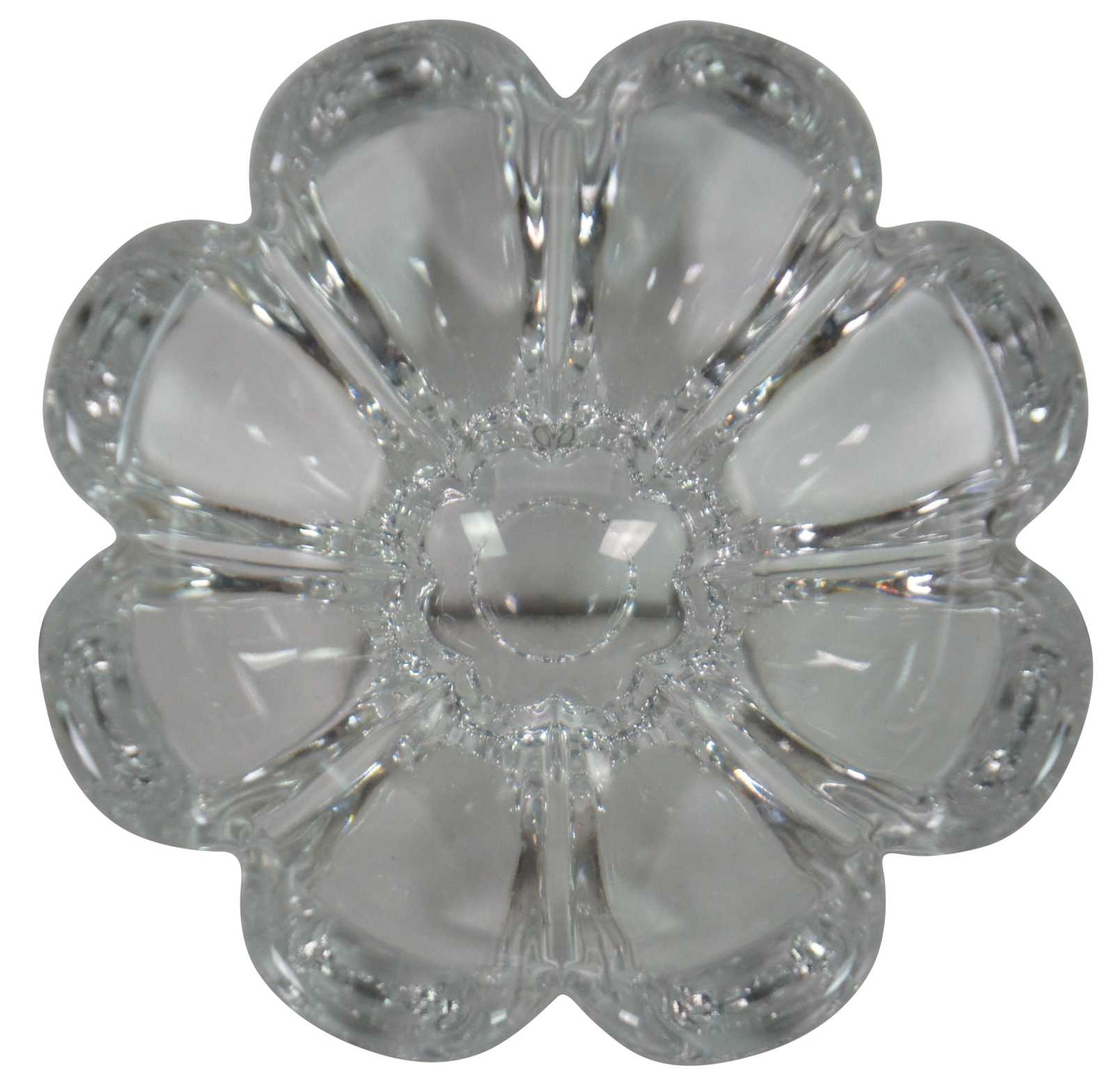Vintage crystal candy dish in the shape of a mayflower; Orrefors Sweden.