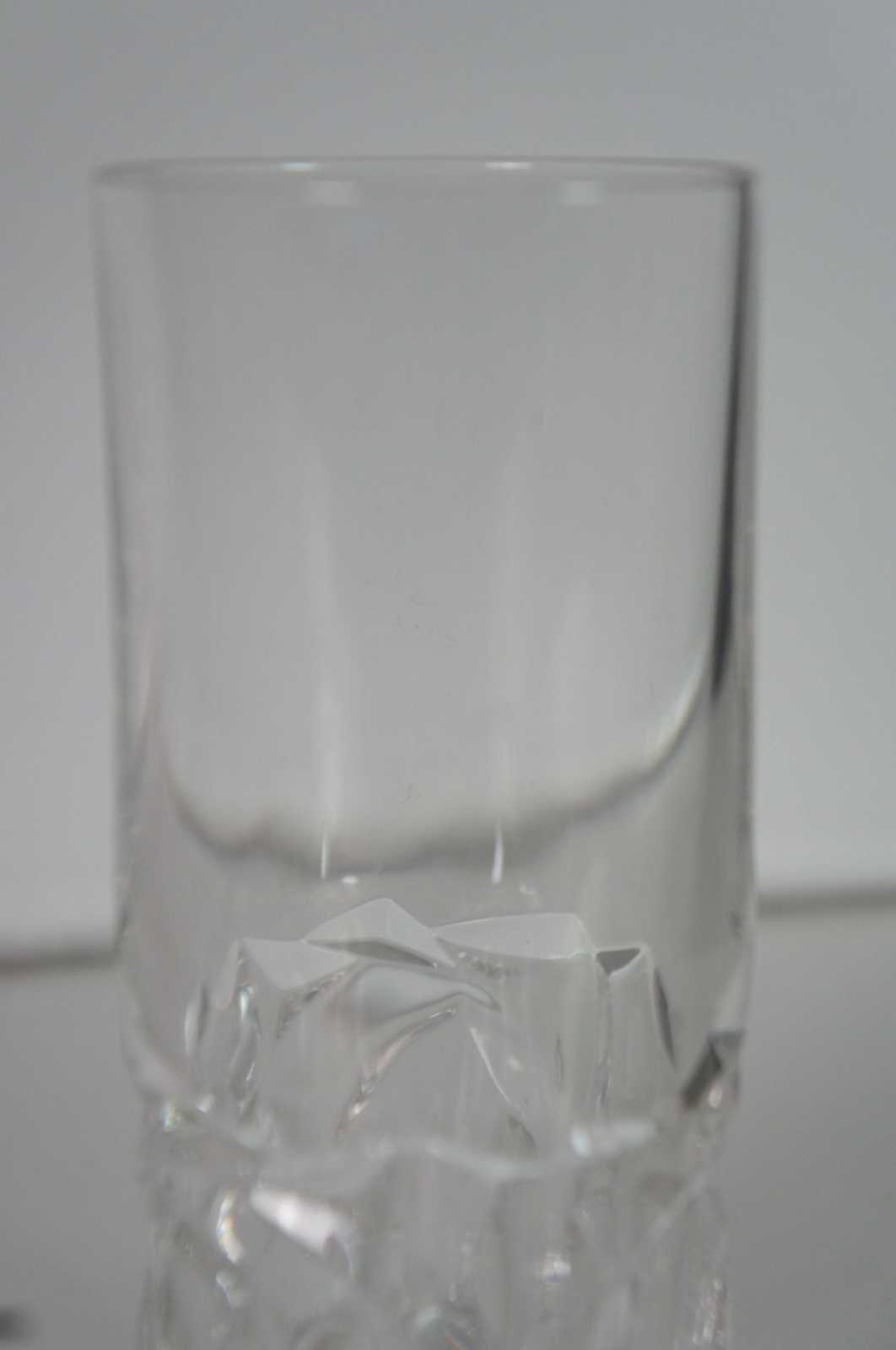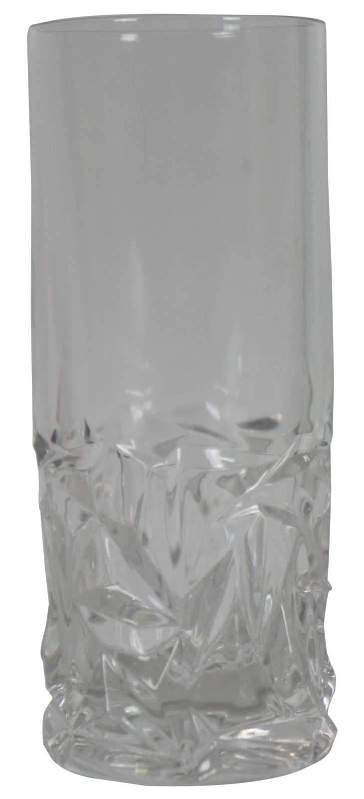 One Tiffany & Co Rock Cut crystal tumbler or highball glass with rough tumbled crystal texture at the base and smooth sides.