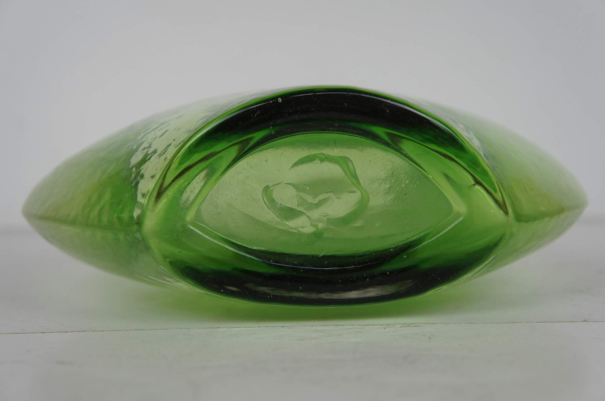 This piece is handmade vintage art glass with a modern flat bulb shape in a peridot shade of green.