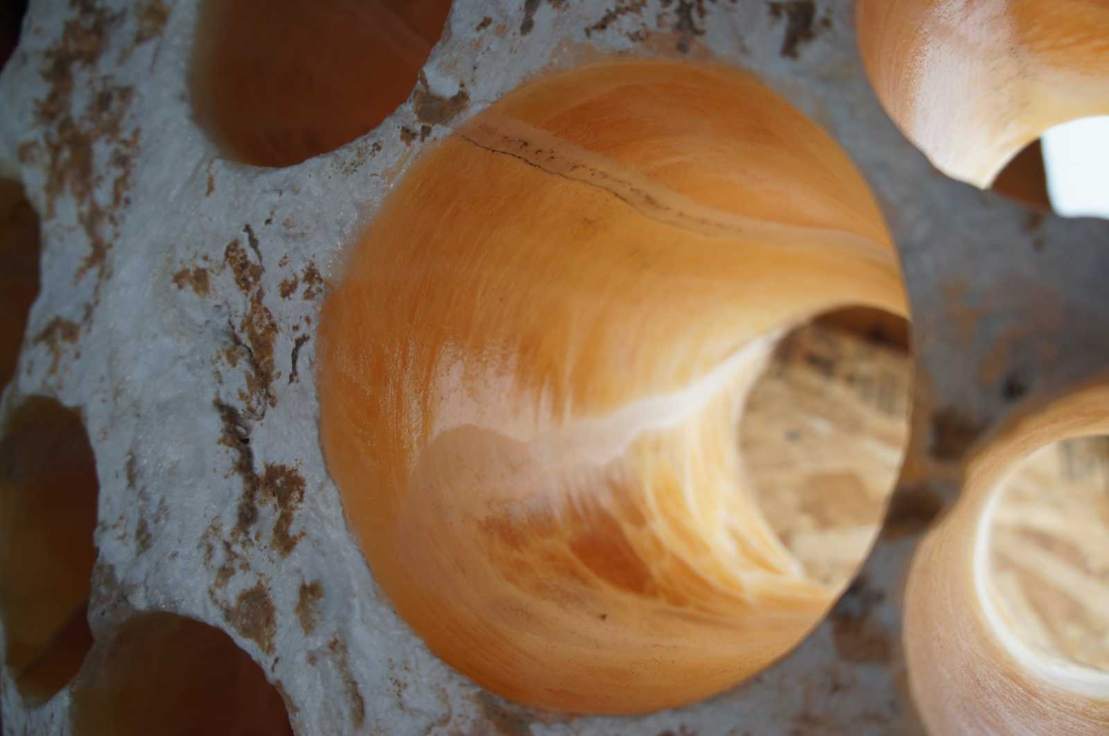 Honeycomb Calcite is a beautiful and impressive form of calcite. mined exclusively in the Salt Lake City region. Honeycomb Calcite, much like onyx and marble (in general characteristics) can provide a colorful replacement or dramatic accent stone for architectural and artistic applications.
